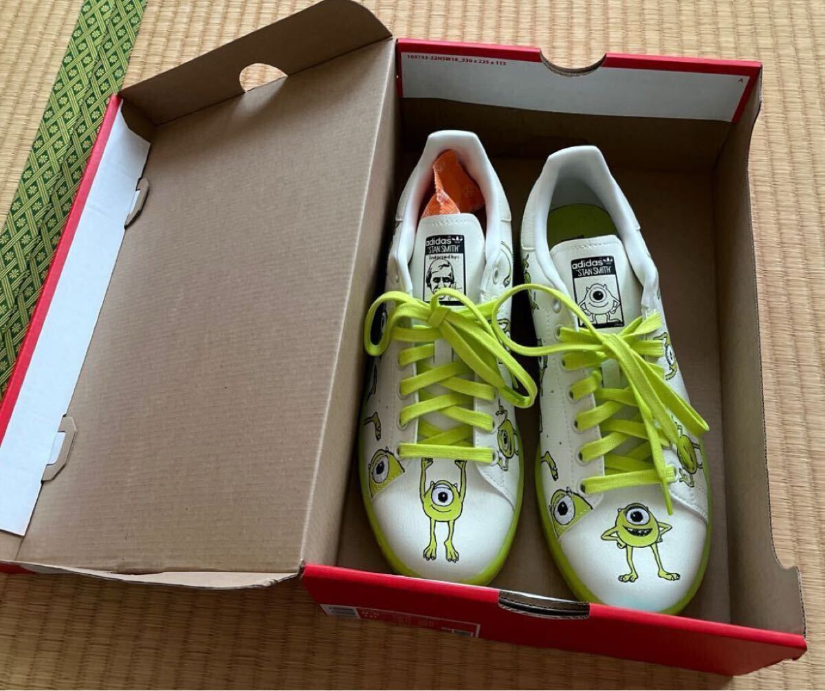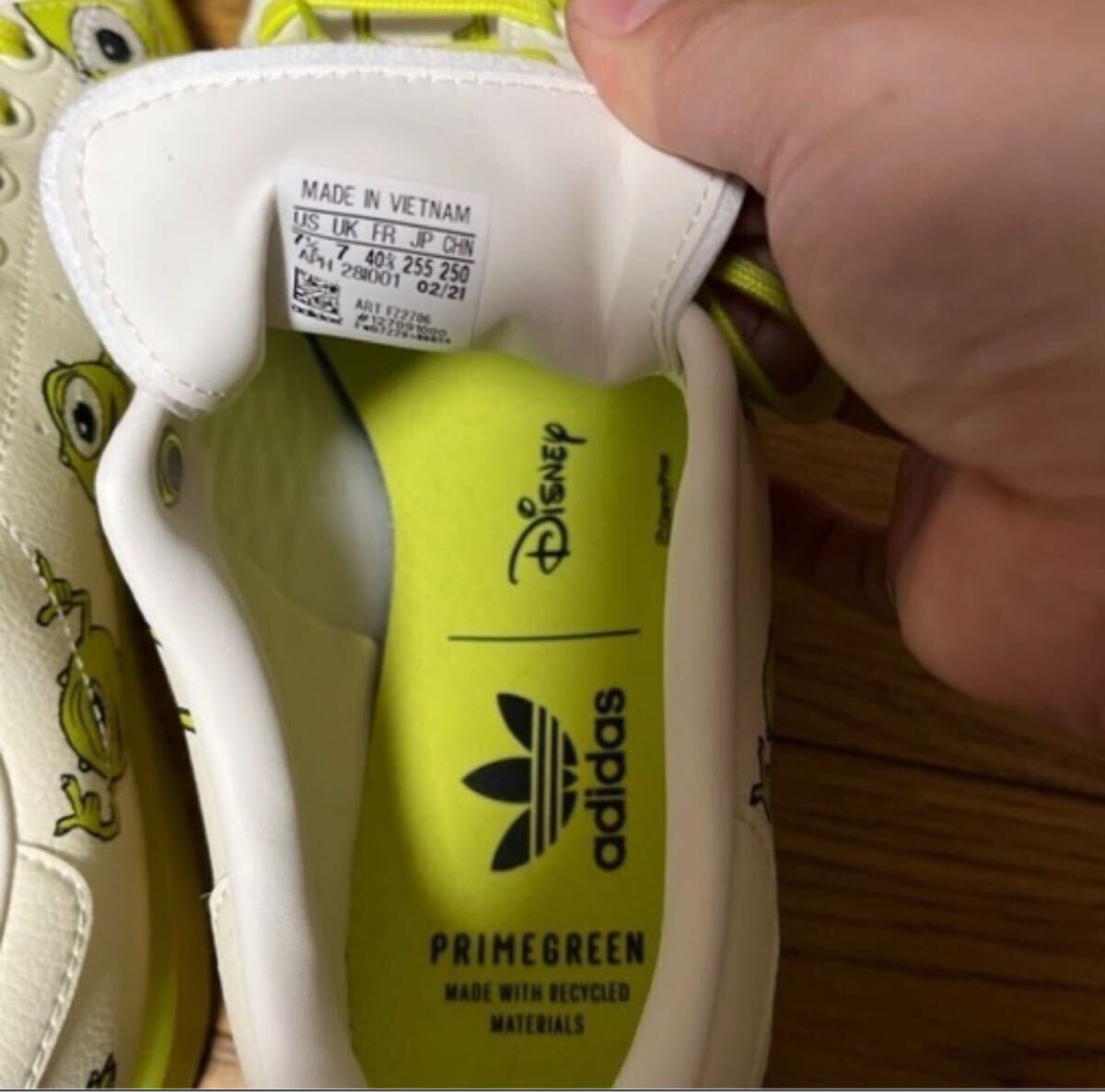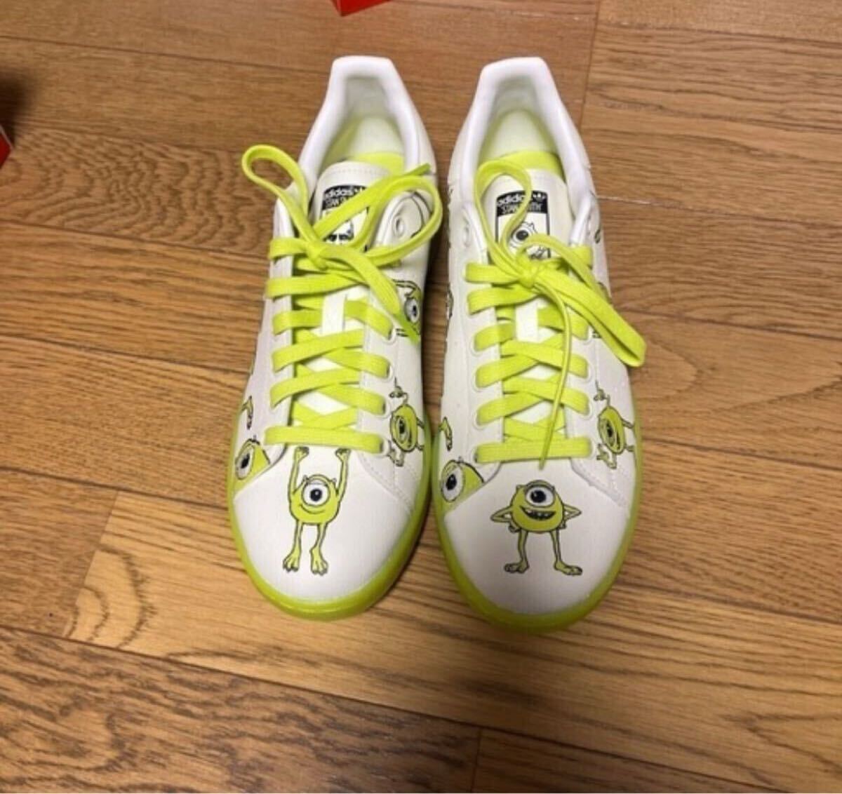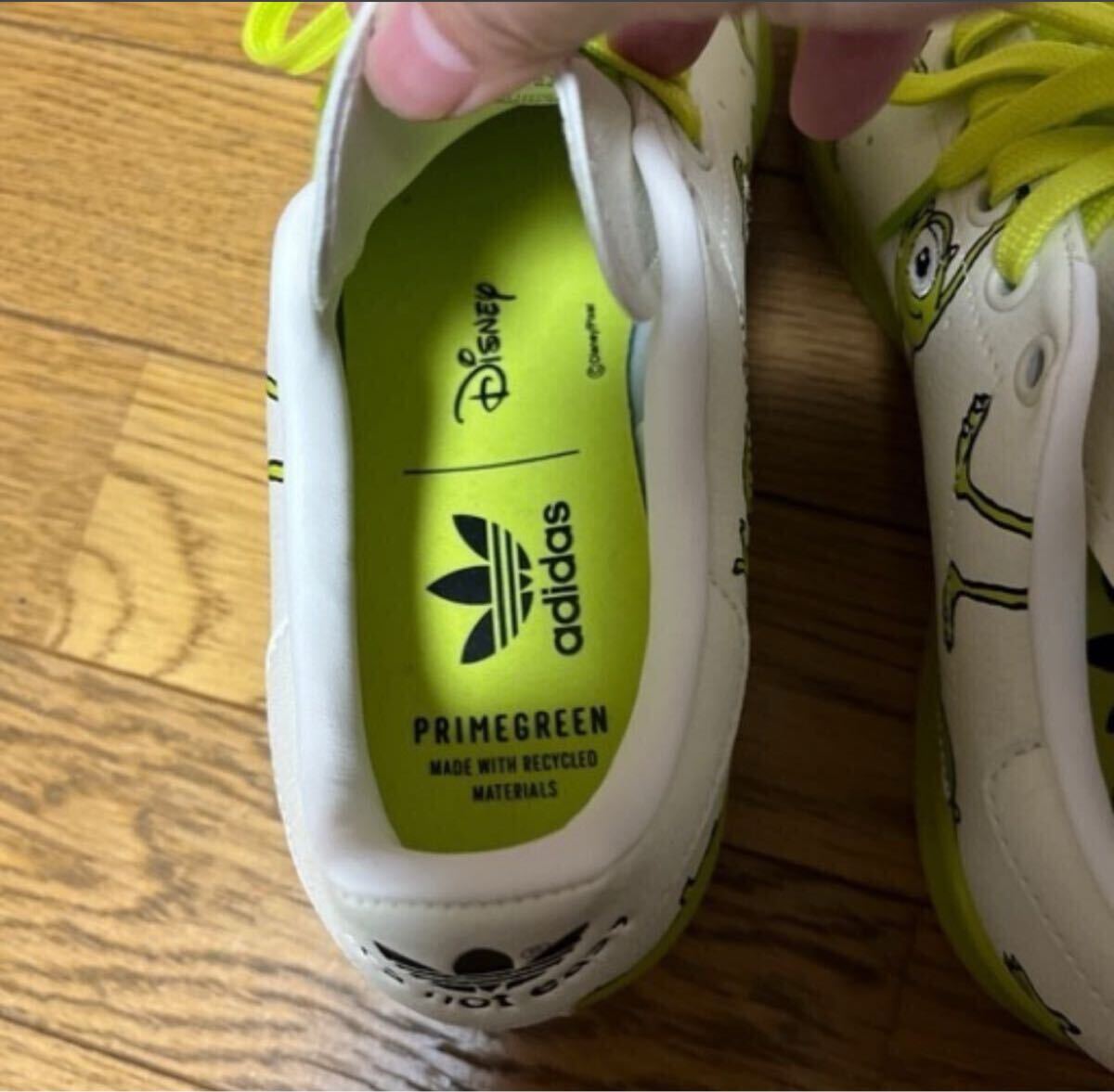Mike Wazowskiのプリントが施されたadidasのスニーカー、リサイクル素材使用。