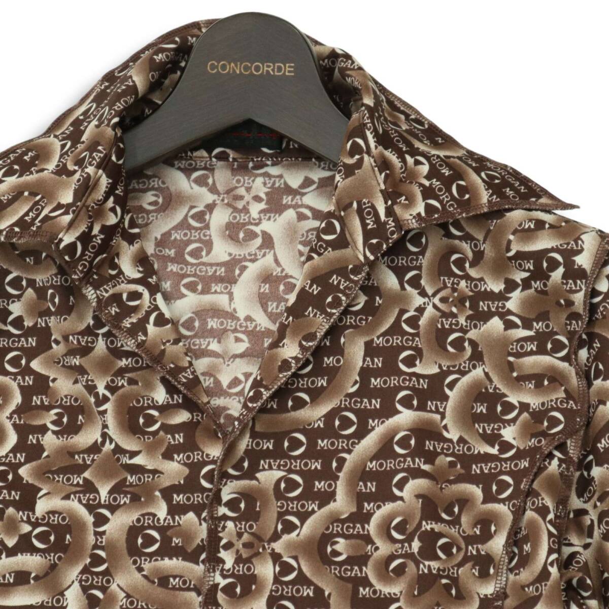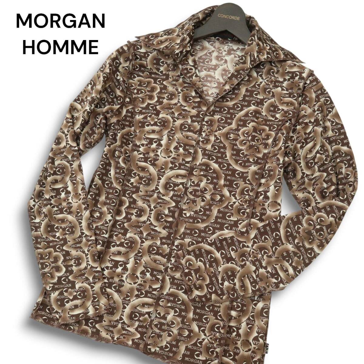MORGAN HOMME モルガン オム 通年 ロゴ デザイン総柄★ ストレッチ 長袖 プルオーバー カット シャツ Sz.M メンズ