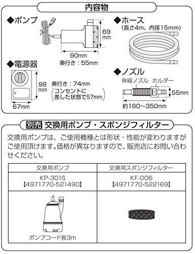 ・ KP-104TH・・Style:タイマー・4mホース付・工進 ミニポンディ・ご好評のバスポンプに改良を加えた新シリーズ・従来機種(kp-103)に比べ給水スピード20%アップ・スイッチング電源採用で小型で扱いやすい・メンテナンスしやすい形状に設計変更。長寿命を実現ミニポンディにコンパクトな新製品が登場 本体デザイン・パッケージデザインを一新しました。 4mホースとホルダー付きですぐに使えます。 タイマー付で時間が来たら自動停止、電源も自動で切れます。 ポンプが従来品より浮き上がりにくい構造に変更しております。