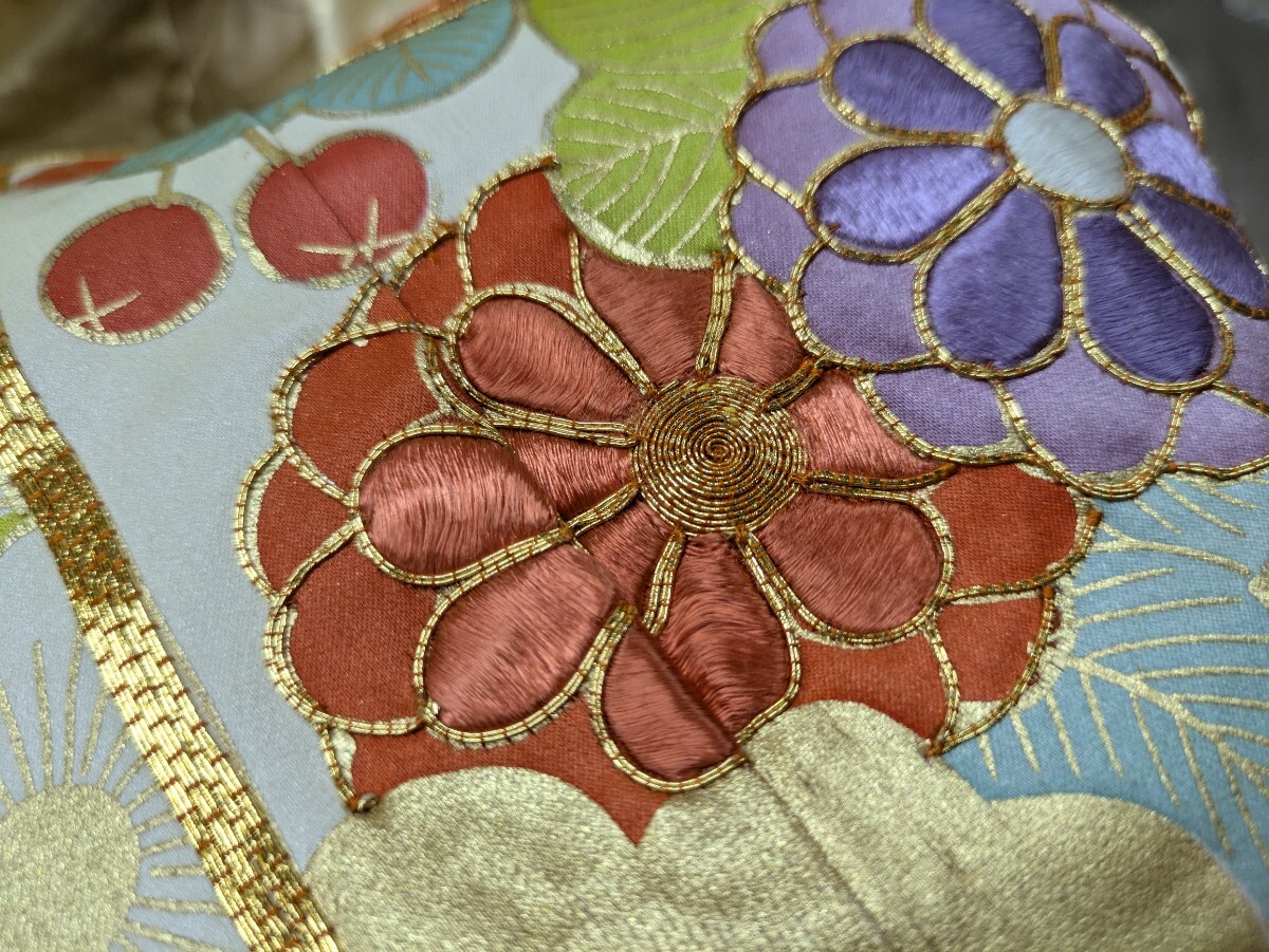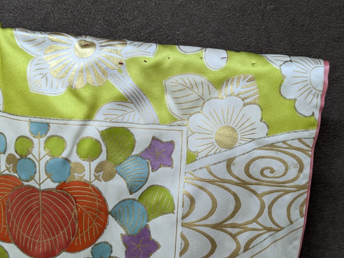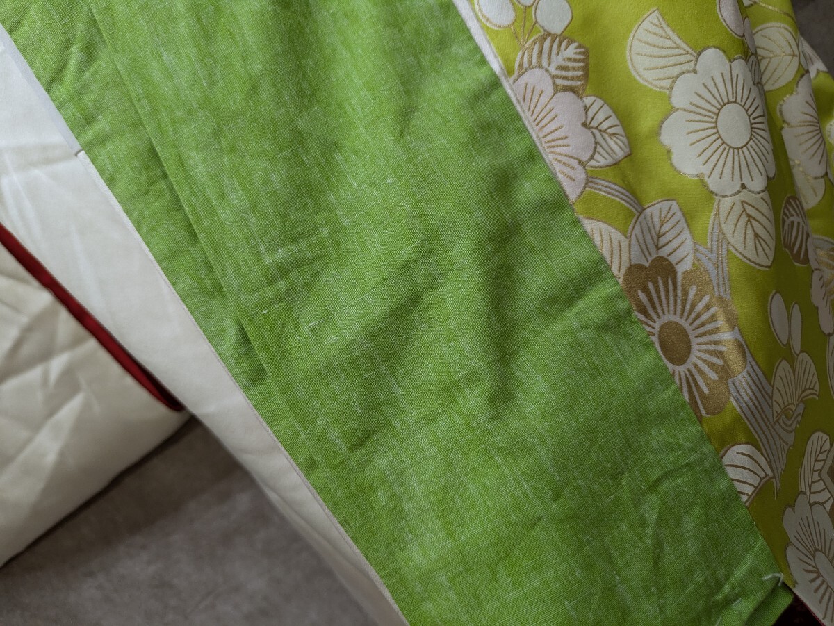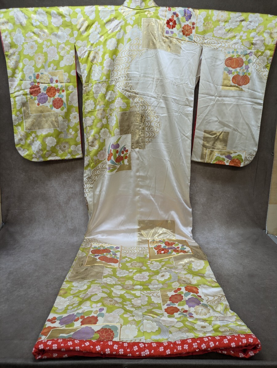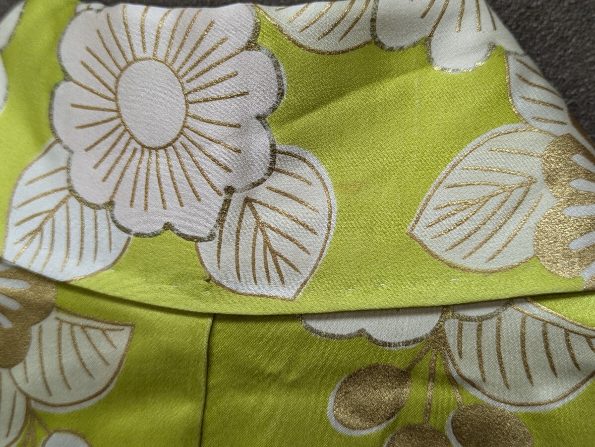 黄緑色のお引き摺り着物です。