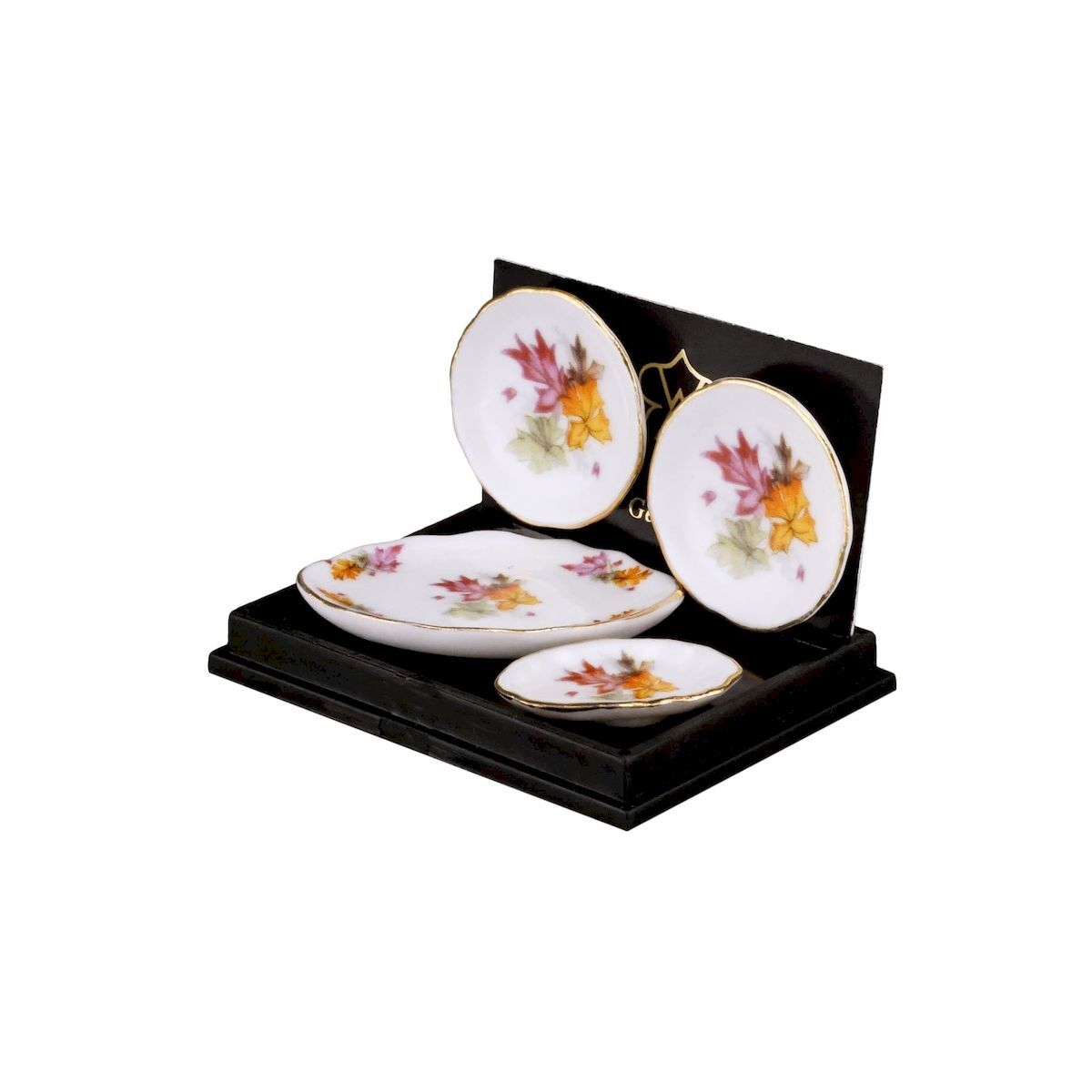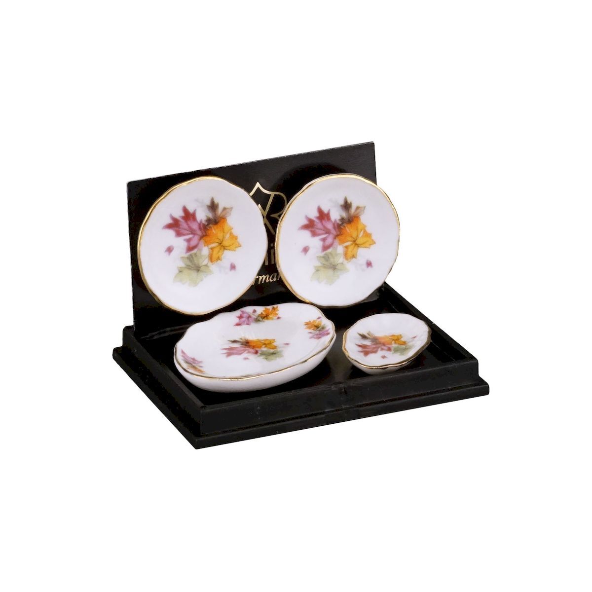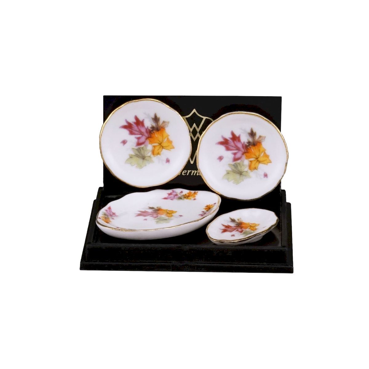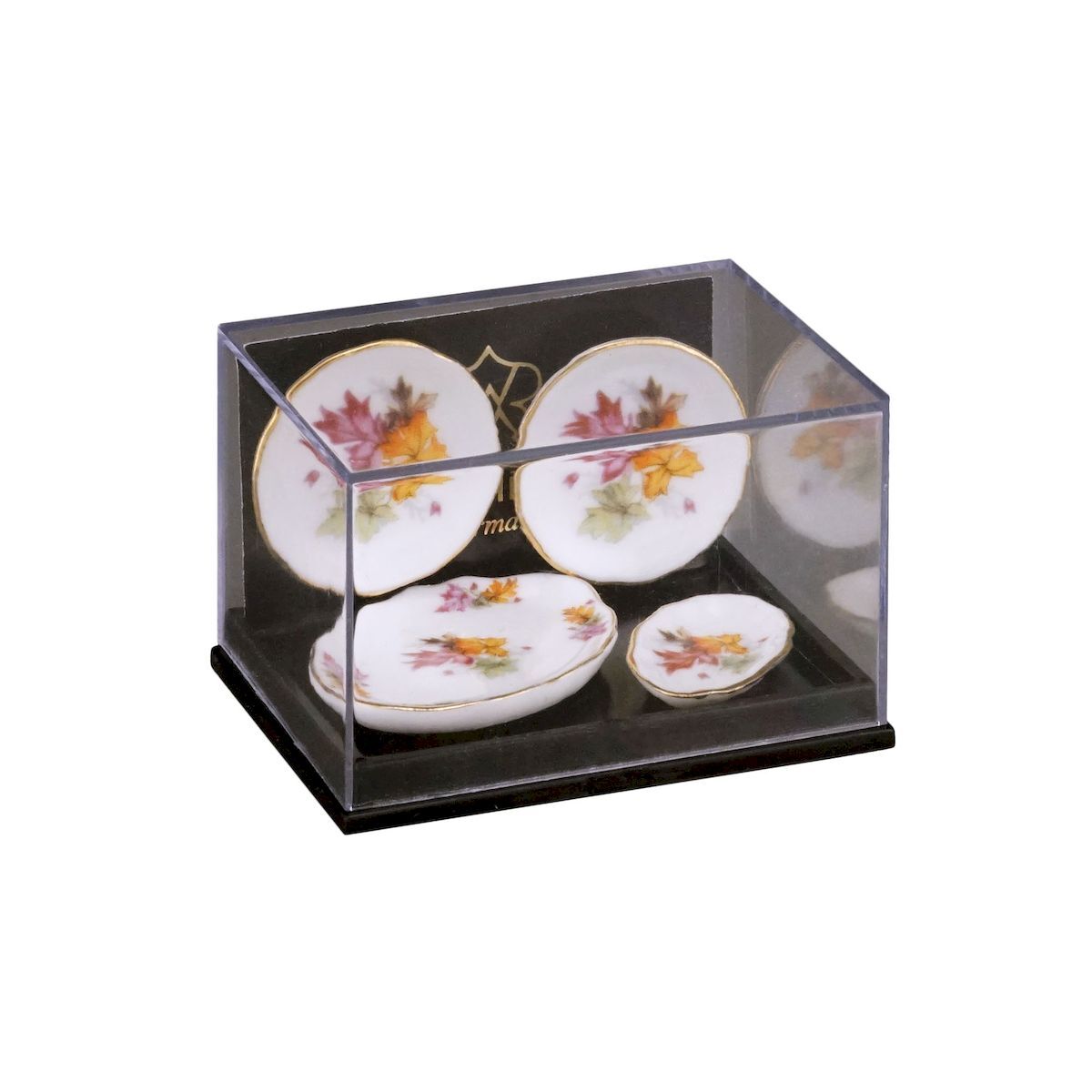 ドイツ ロイター社のミニチュアです。素敵なハーベスト柄の登場です!キッチンがぱっと華やぎますよ!大きな打線皿のサイズ:35x25ミリ。小さな楕円皿のサイズ:25x15ミリ。丸皿の直径約23ミリ。アクリルケース入りです。アクリルケースのサイズ:W55xD42xH35。アクリルケースのサイズ:W80xD55xH48ミリ。