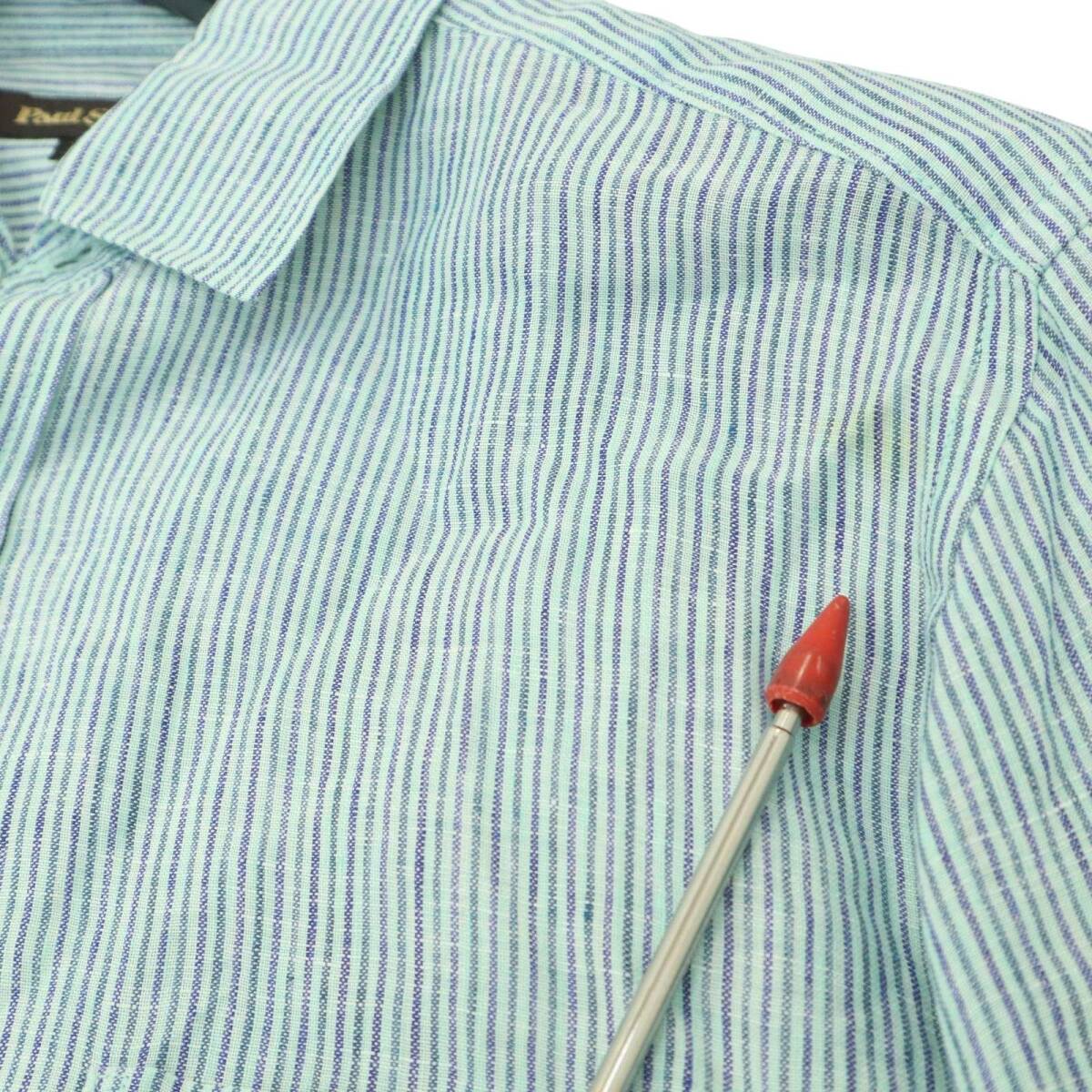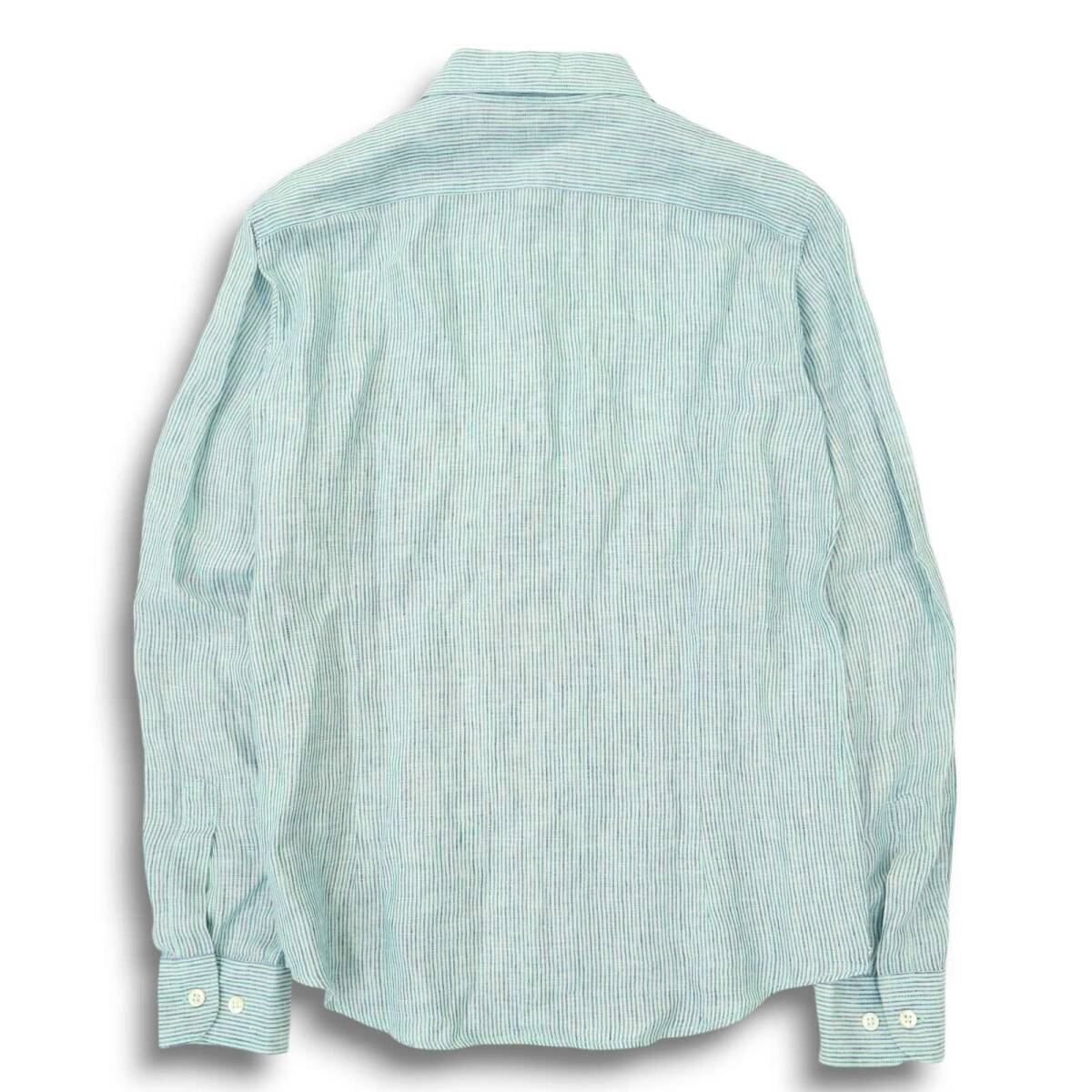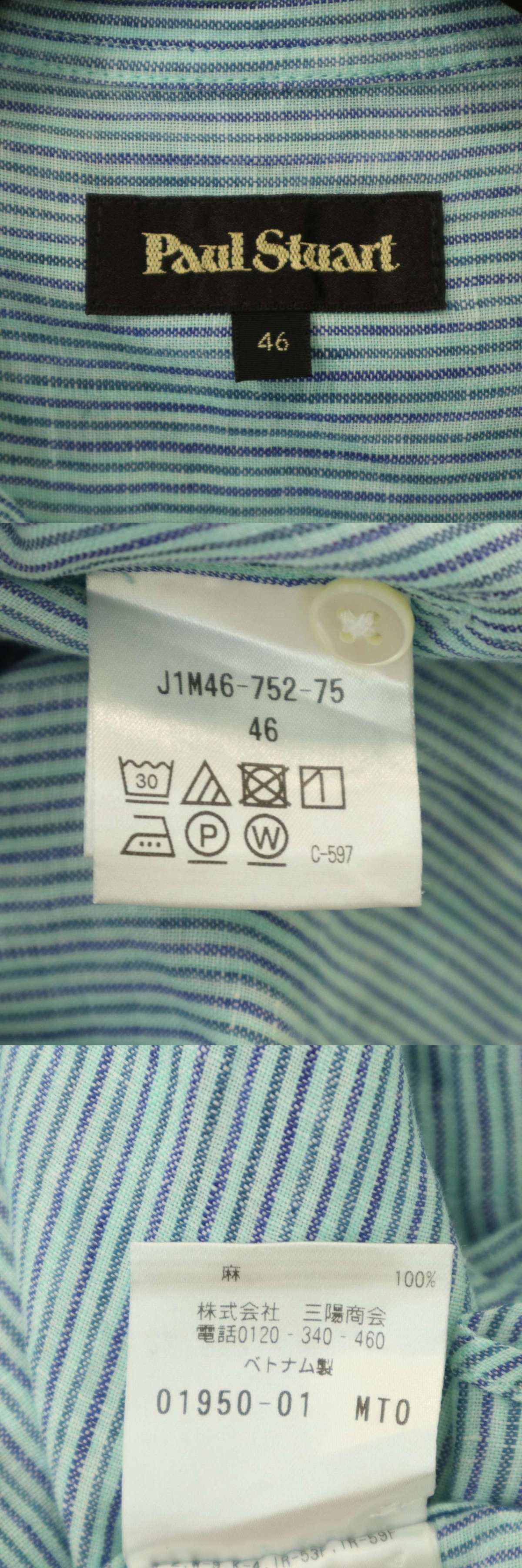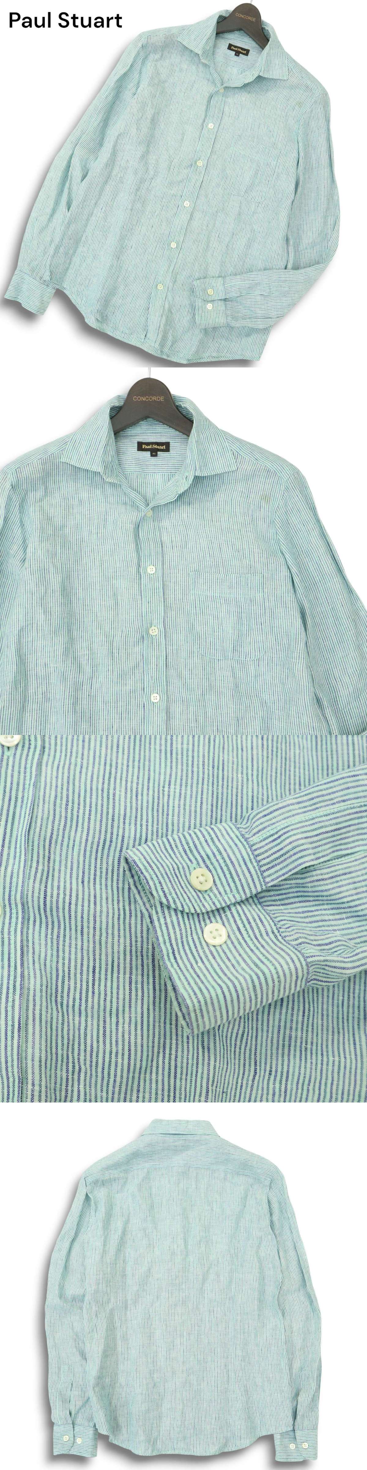 Paul Stuart ポール・スチュアート 春夏 麻 リネン100%★ 長袖 ストライプ シャツ Sz.46 メンズ