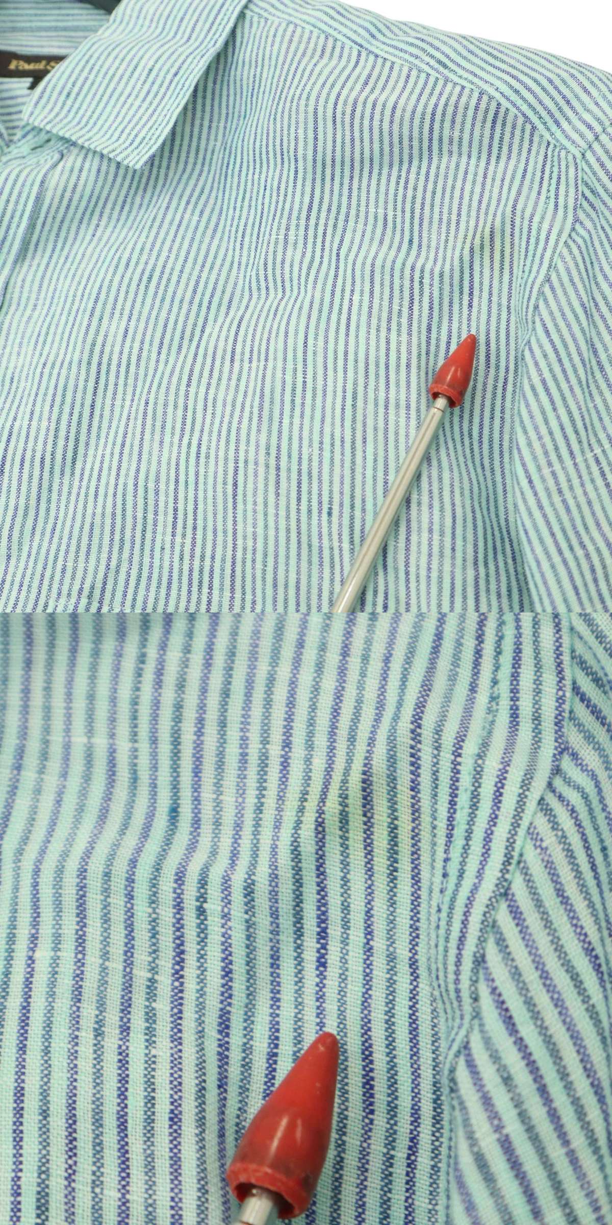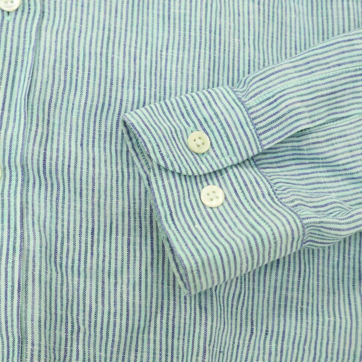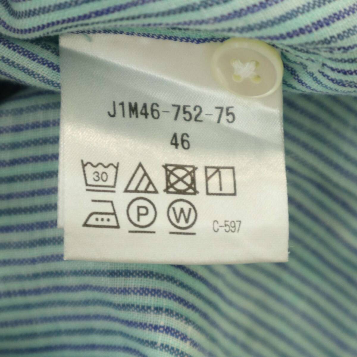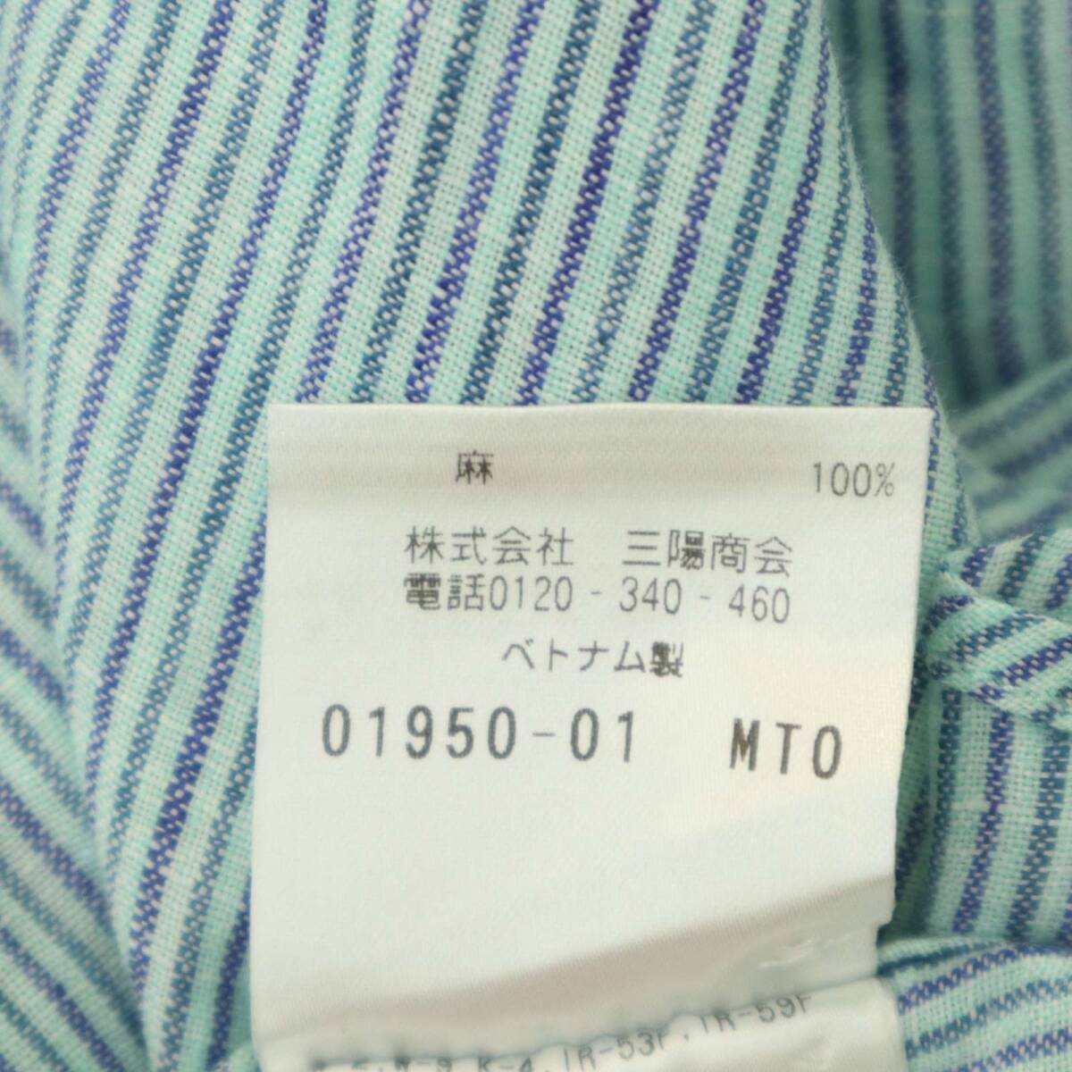 Paul Stuart ポール・スチュアート 春夏 麻 リネン100%★ 長袖 ストライプ シャツ Sz.46 メンズ