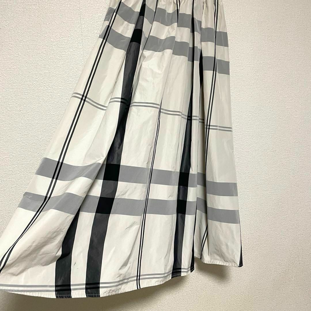 大きめのチェック柄が目を惹く、ロング丈のフレアスカート。ふんわりとした程よいボリューム感のあるシルエットが、フェミニンな雰囲気を演出してくれます。ウエスト部分はゴム仕様で着脱しやすく、ストレスフリーな穿き心地も嬉しいポイントです。