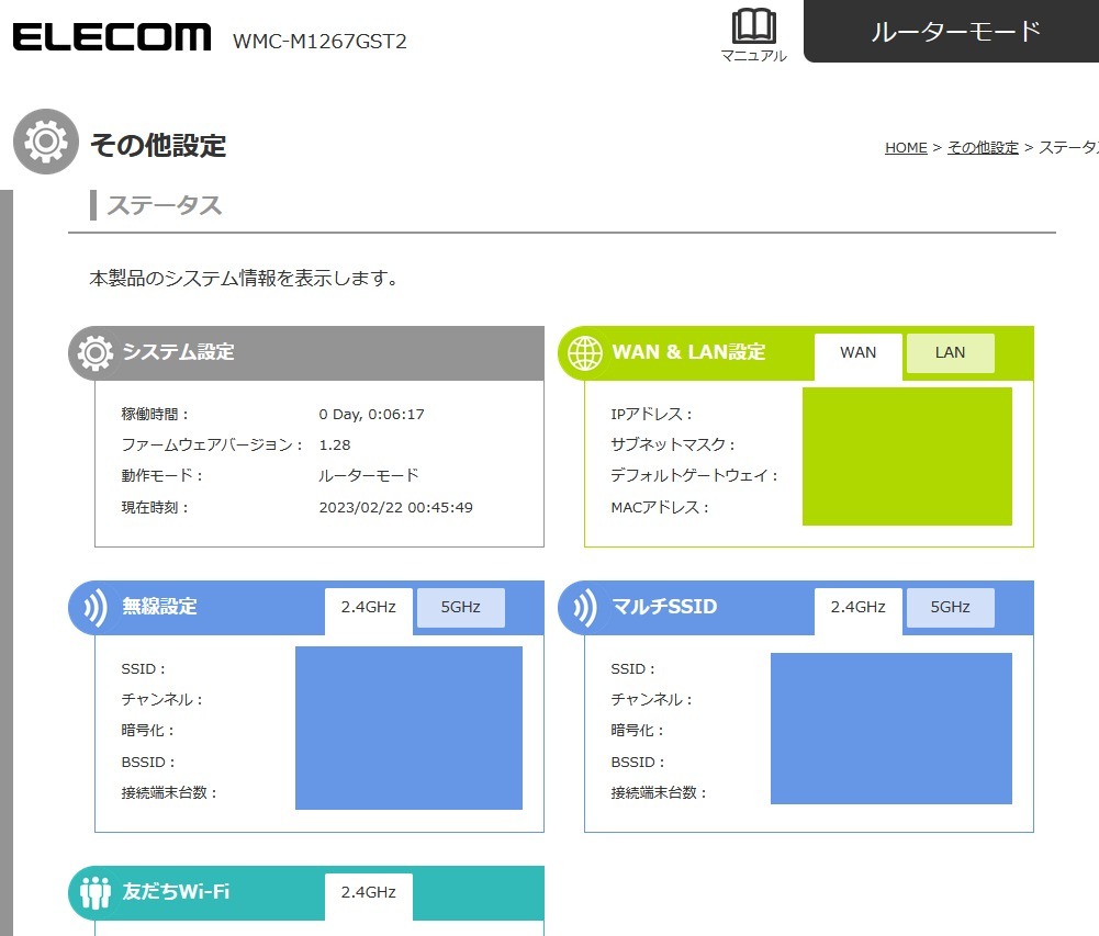 エレコムの無線規格acに対応した Wi-Fiルーター「WMC-M1267GST2-W」と 「WMC-S1267GS2-W」の組み合わせ 2台を組み合わせることで メッシュネットワークが組める機材で 有線LAN部分がギガビットLANに 無線部分はacへ対応し、他の規格では bとかgだけではなくaやnにも対応している事や 帯域で2.4GHz帯も5GHz帯もサポートしていて 背面の設定で子機モードや中継器モードへ 簡単に変更可能になると言うのも特徴です。 WMC-S1267GS2-Wは単体では動作せず 設定したWMC-M1267GST2-Wを起動させたあとに それぞれのWPSボタンでリンクさせることで 簡単にメッシュネットワークを構築出来る仕組み 動作は両方確認済み WMC-M1267GST2-WをPPPoEでWANをテスト 4ポートのLANも全ポートをチェック 無線LANも2.4GHzと5GHzをチェック済み 単体では動作しないWMC-S1267GS2-Wも 設定したWMC-M1267GST2-Wにリンクさせて 割り振りされたIPアドレスへアクセスし ステータス画面でメッシュの状況を確認済み ファームウェアはそれぞれが最新の1.28です。 |