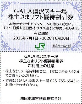 JR東日本 株主優待券 GALA湯沢スキー場 割引券 12枚set ~5組迄 2026年6月末迄有効