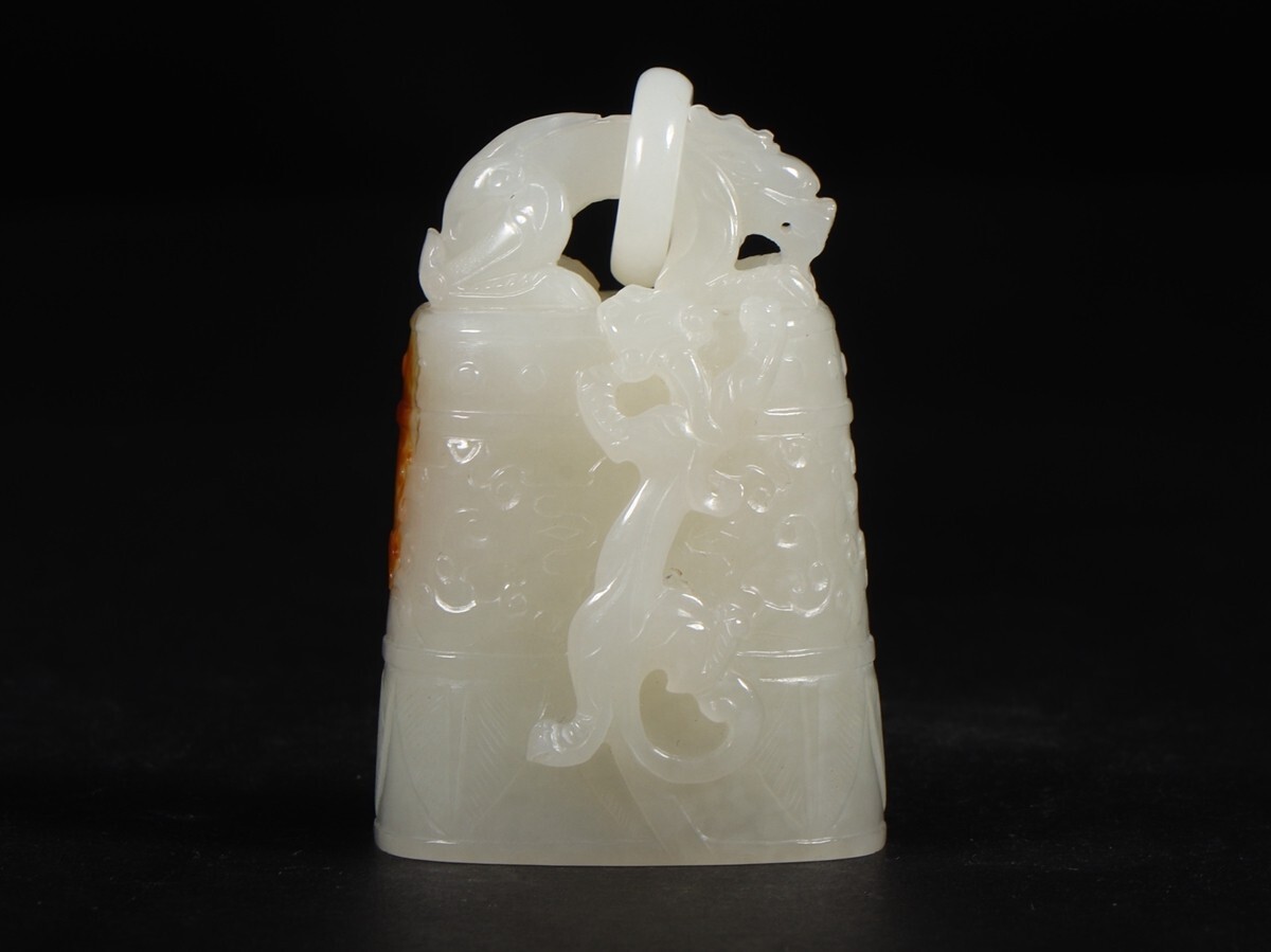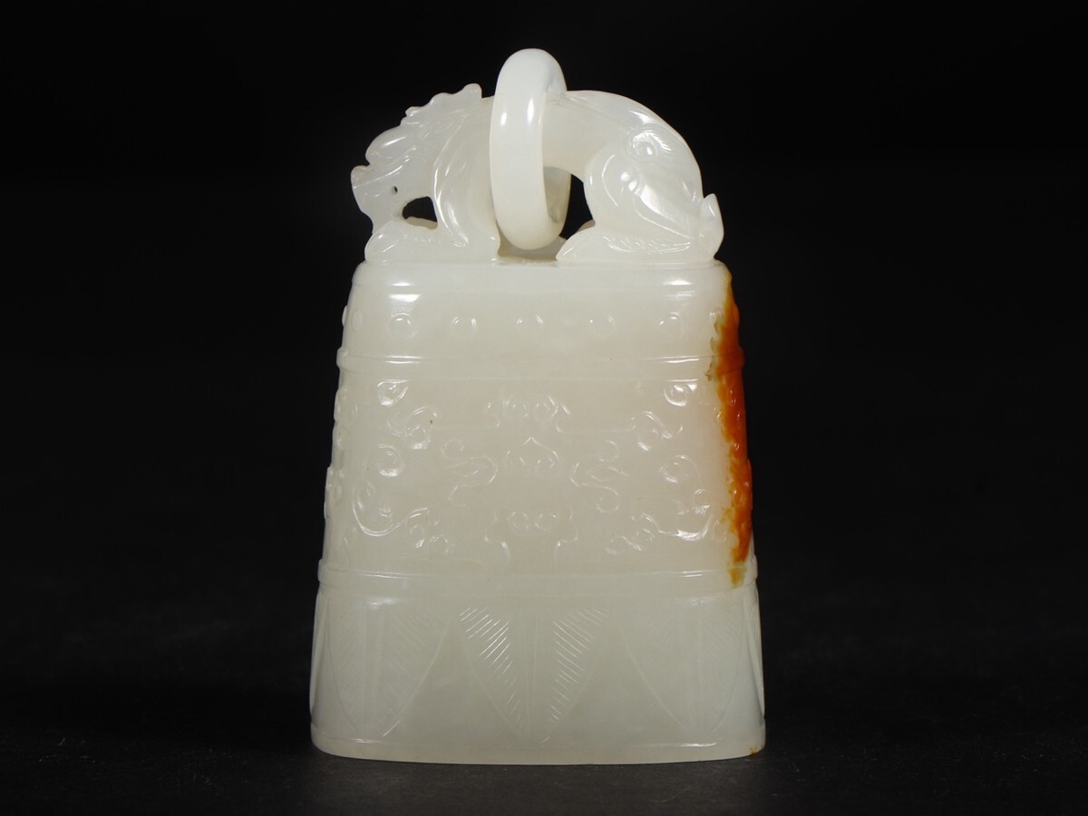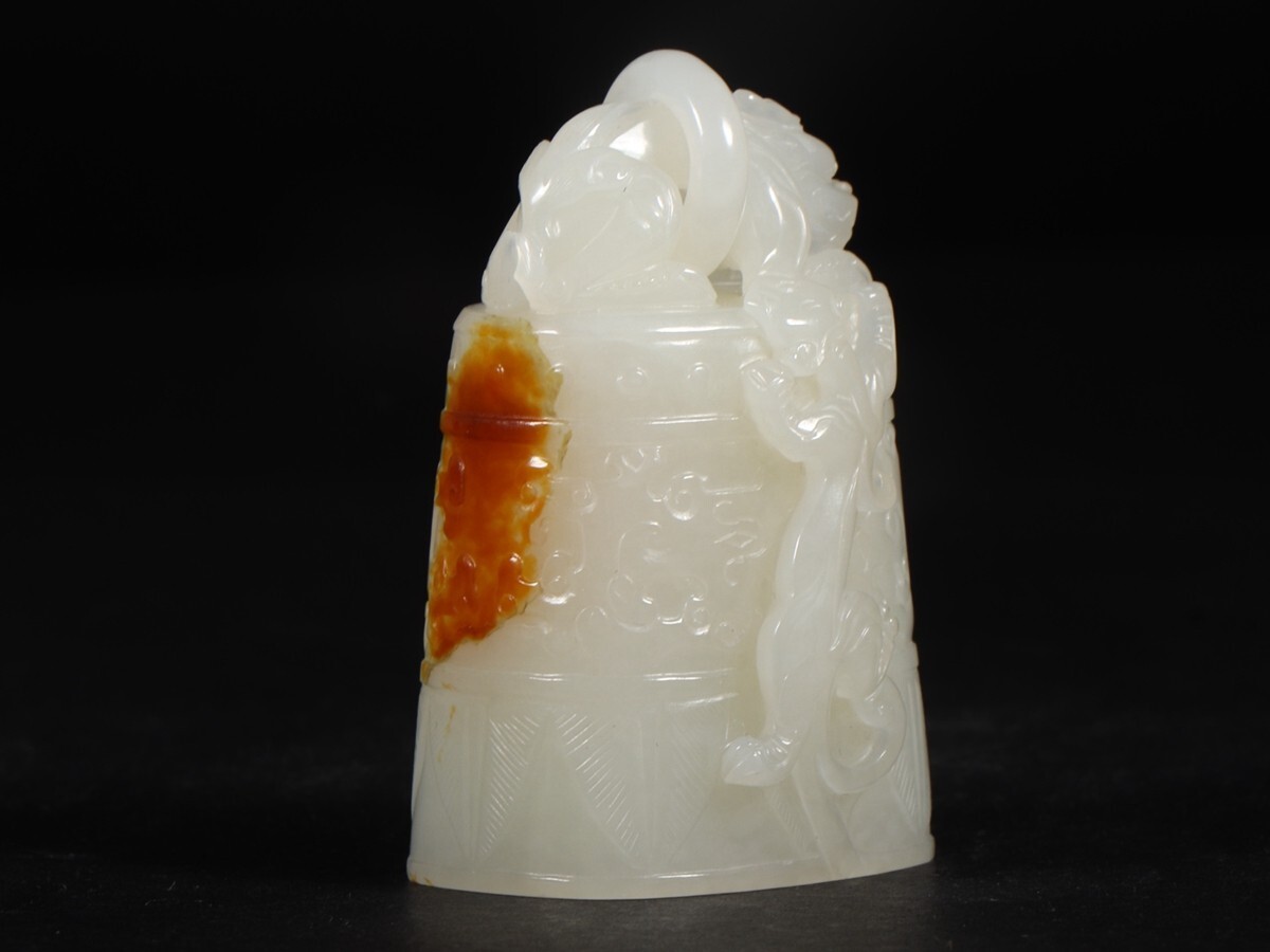 「時代物 和田玉 子料彫り 魑龍 鈴」極細工 賞物 中国古美術 旧蔵出