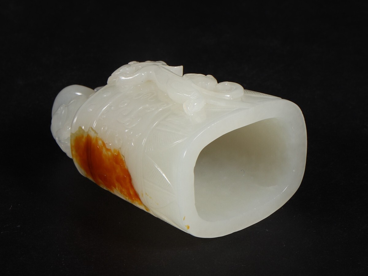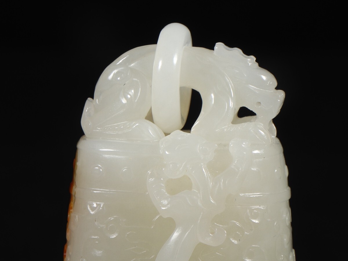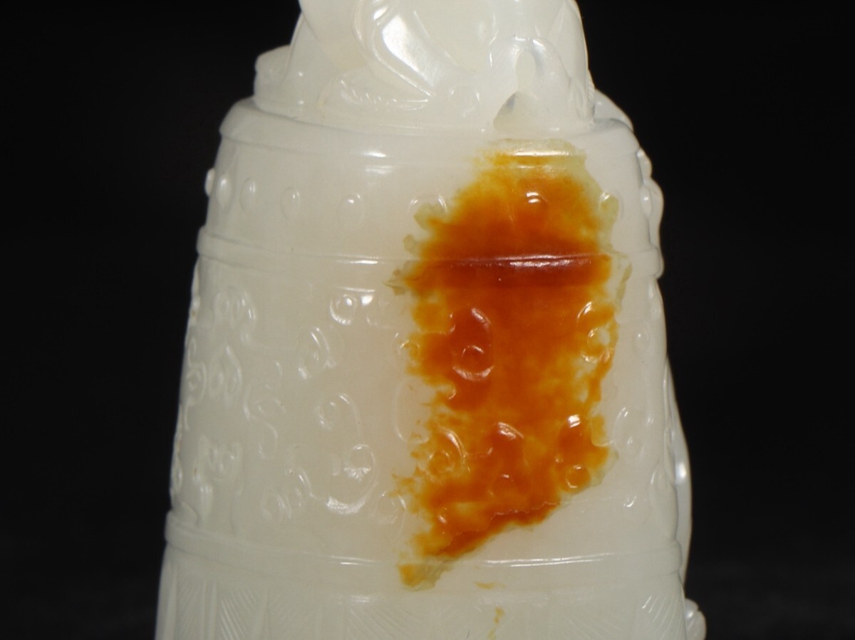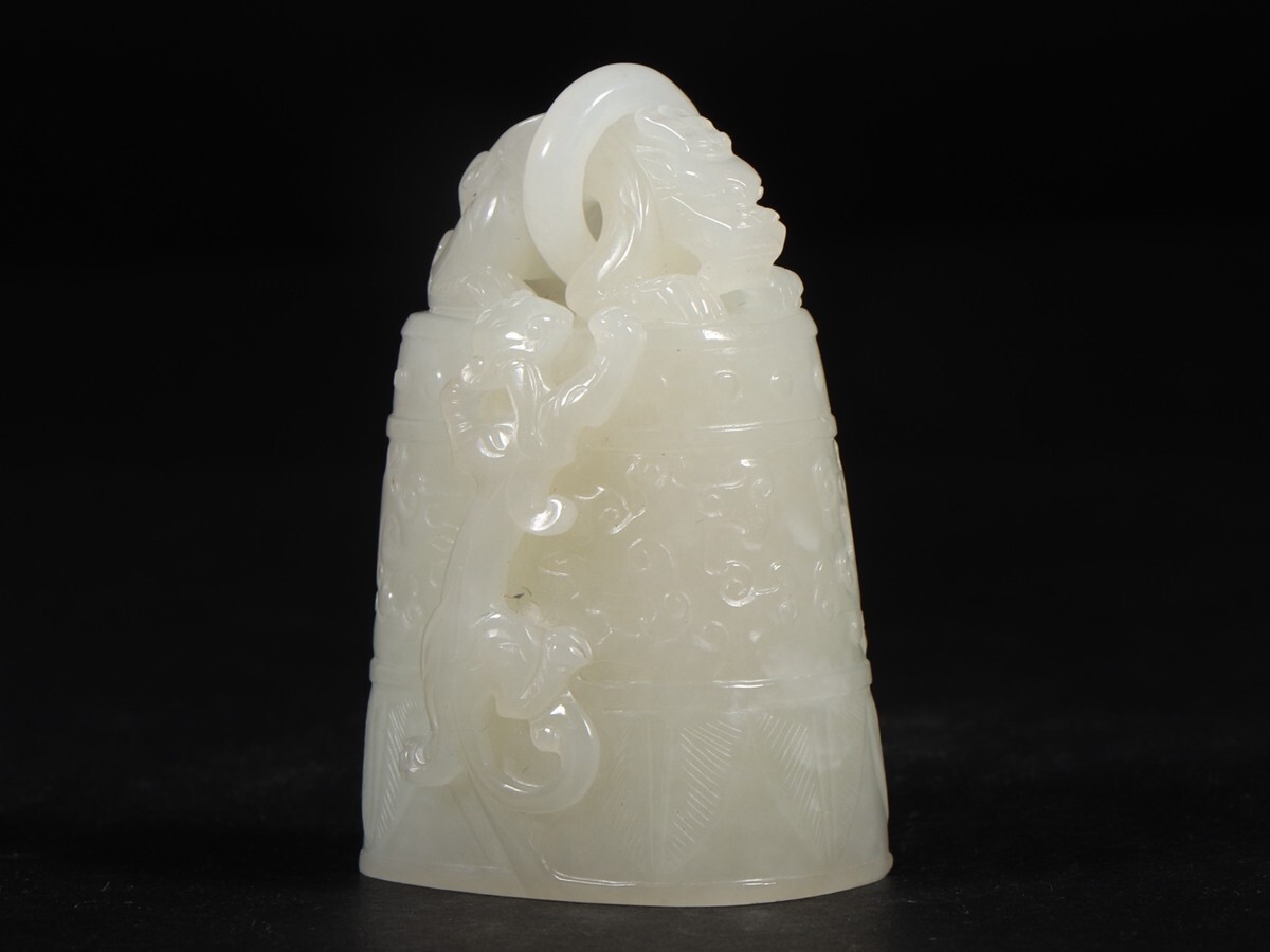 「時代物 和田玉 子料彫り 魑龍 鈴」極細工 賞物 中国古美術 旧蔵出