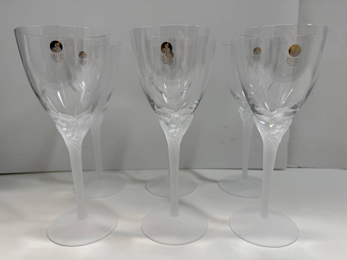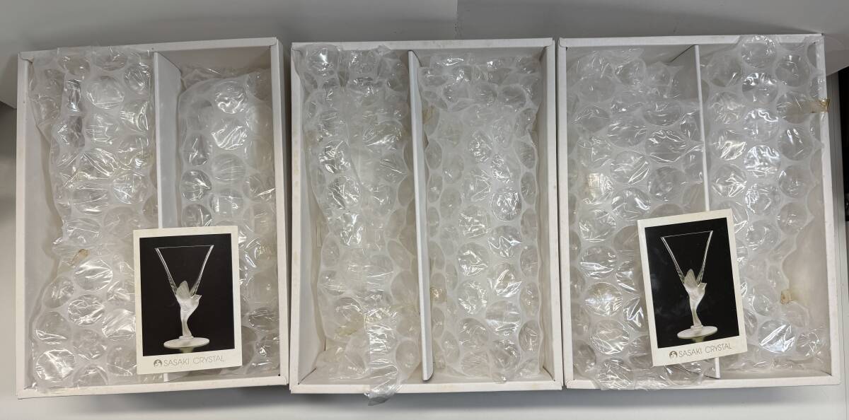 H34011 ● SASAKI CRYSTAL ササキクリスタル ワイン グラス ゴブレット 佐々木硝子 スズラン 鈴蘭 ペアグラス 3箱×2客セット 長期保管品