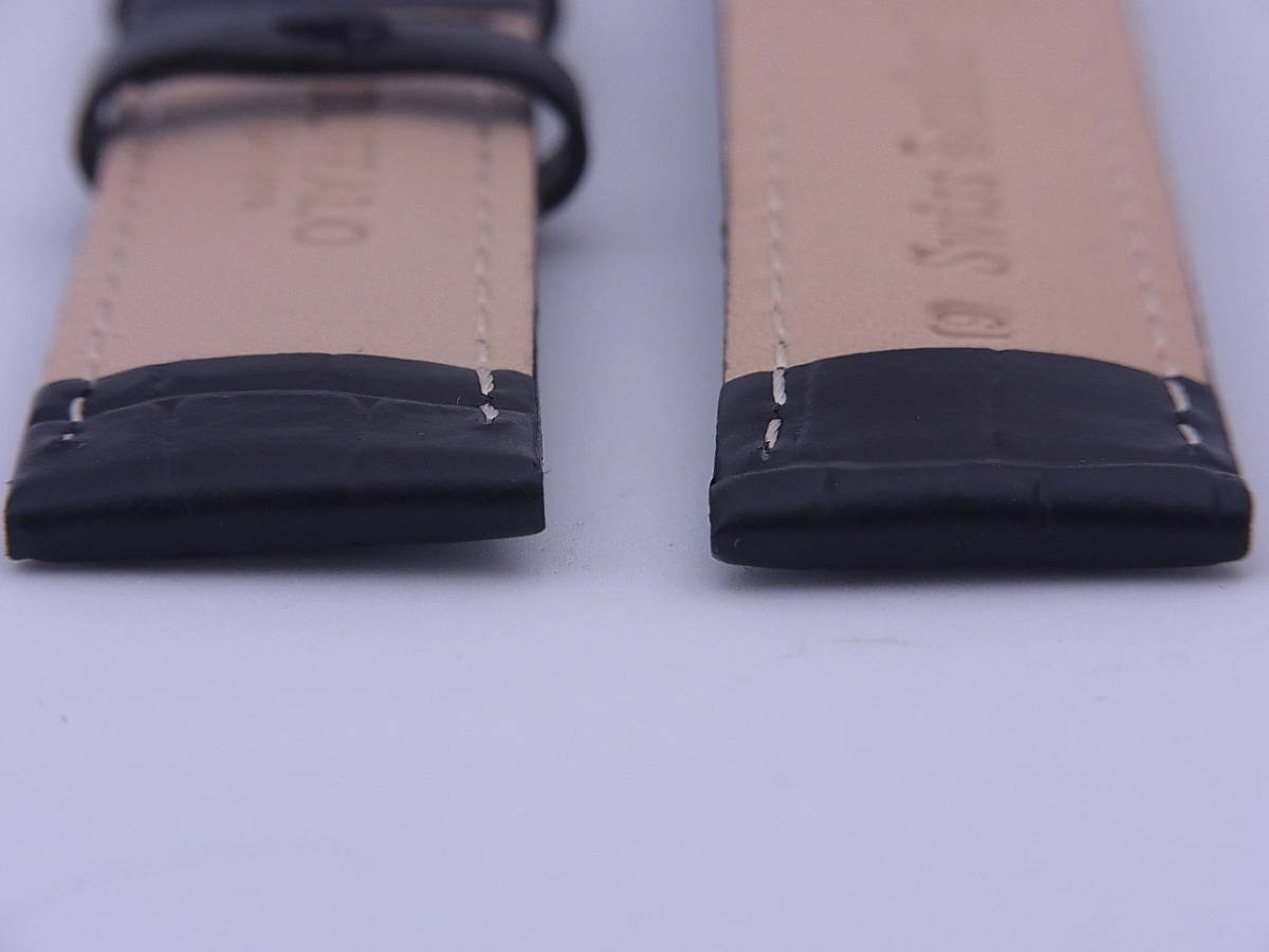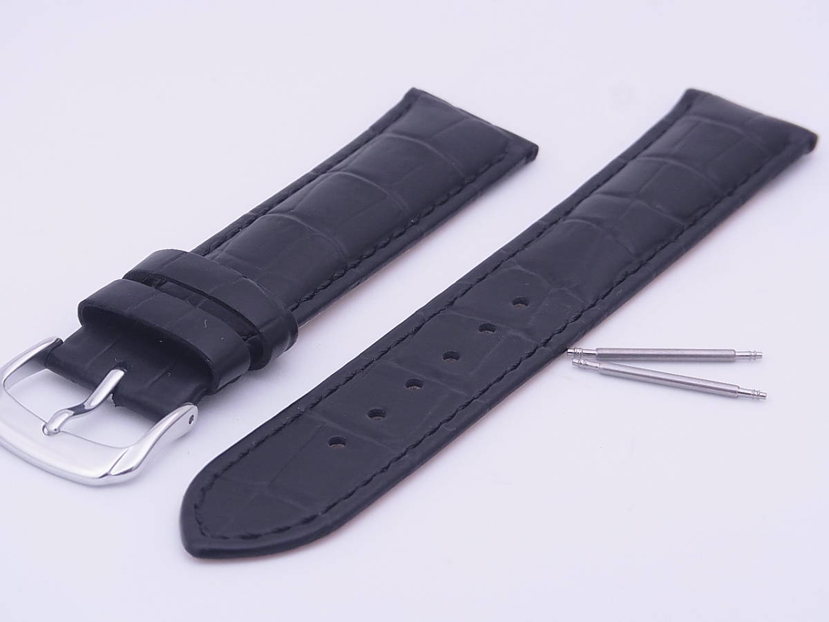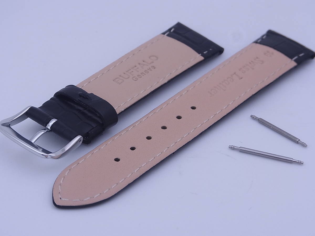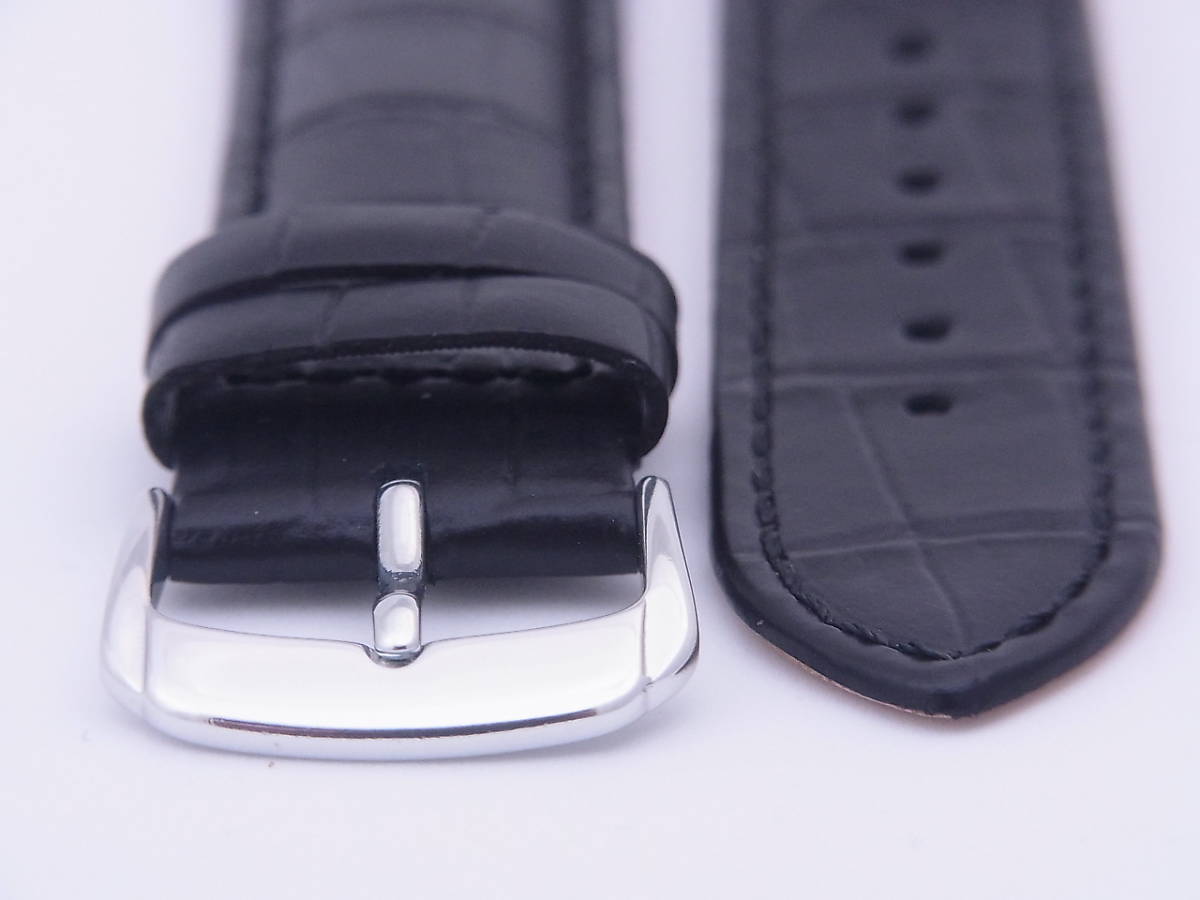 ●19ミリ幅 黒 型押し皮ベルト銀色尾錠 厚み最大4.5ミリ程度 バネ棒付き ロレックスオイスターデイトなどに バネ棒付き