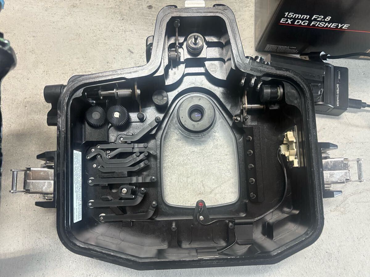 付属のSigma広角レンズで撮影する際は、ドームポートが必要になります。こちらは引き続き個人使用する為、付属しませんので、必須があれば別途ご購入ください。