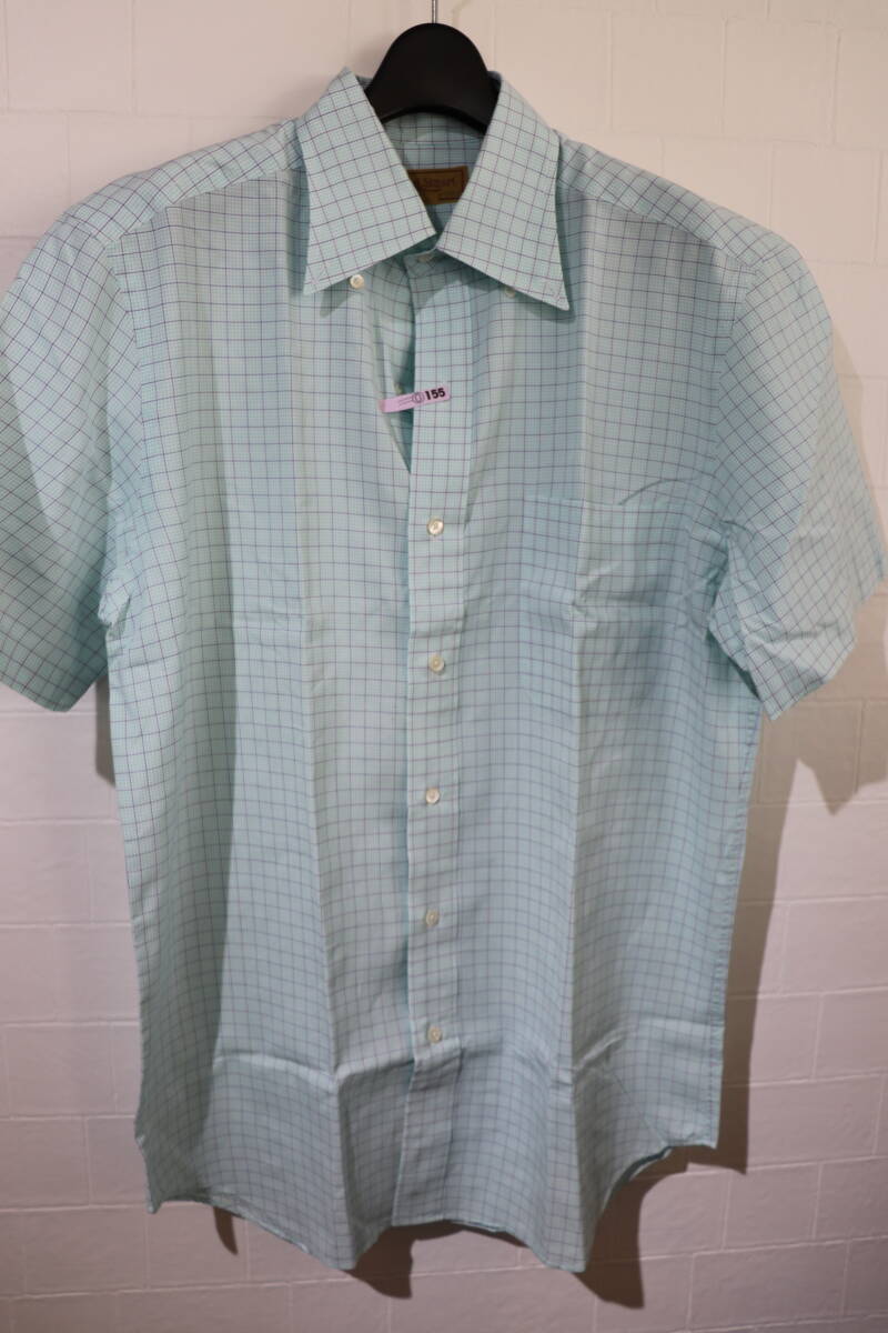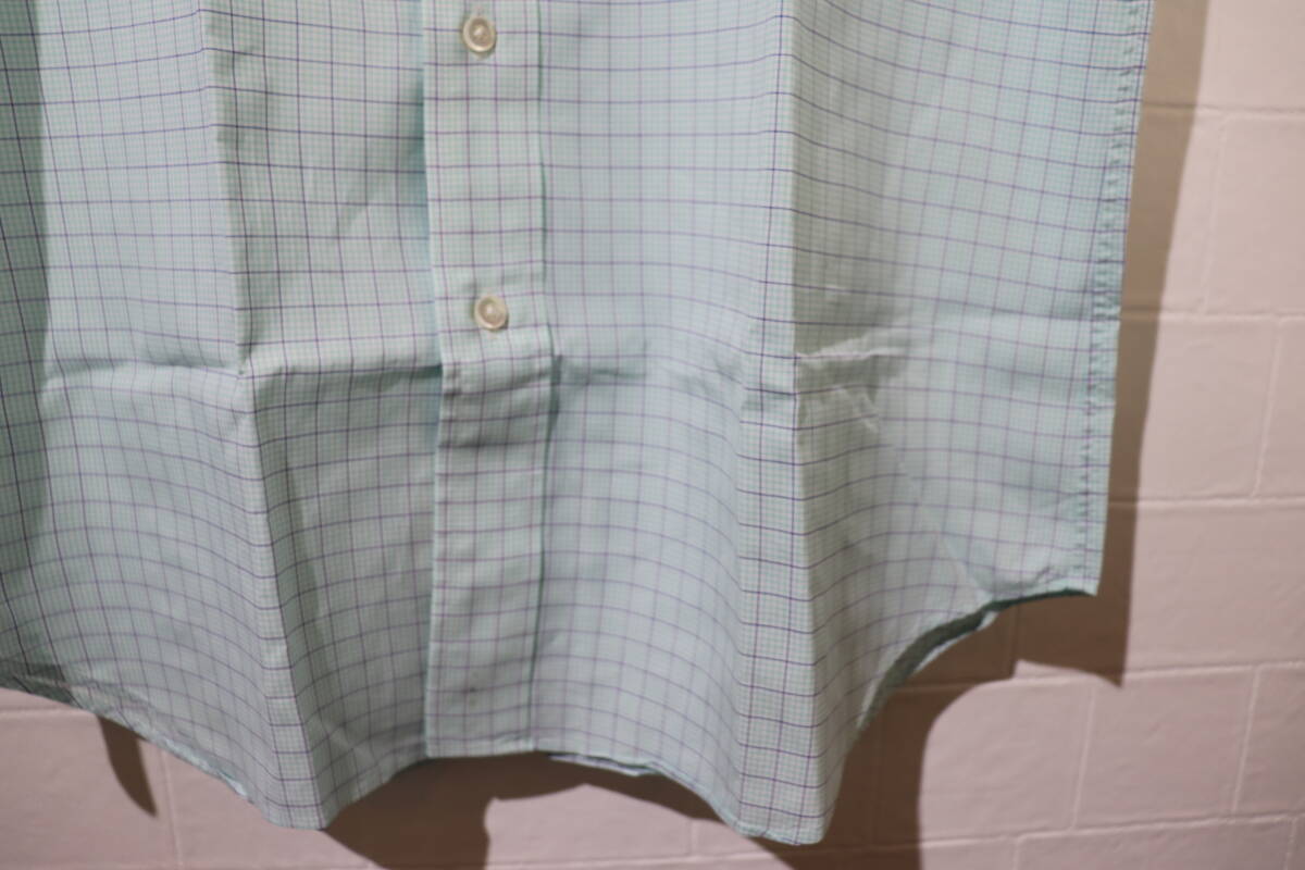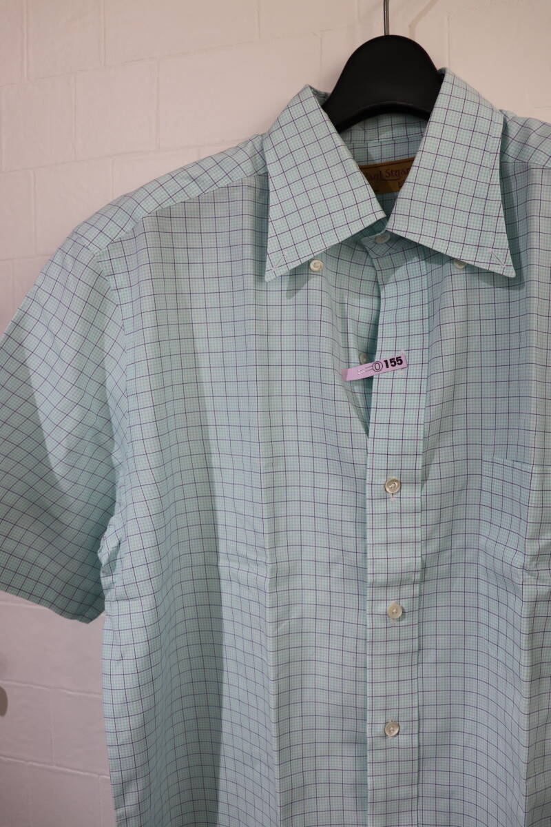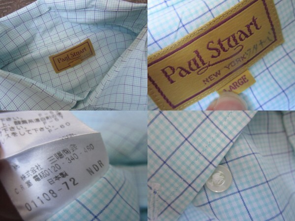 『名作    日本製    Paul Stuart     半袖チェック柄BDシャツ    メンズL    ブルー系』