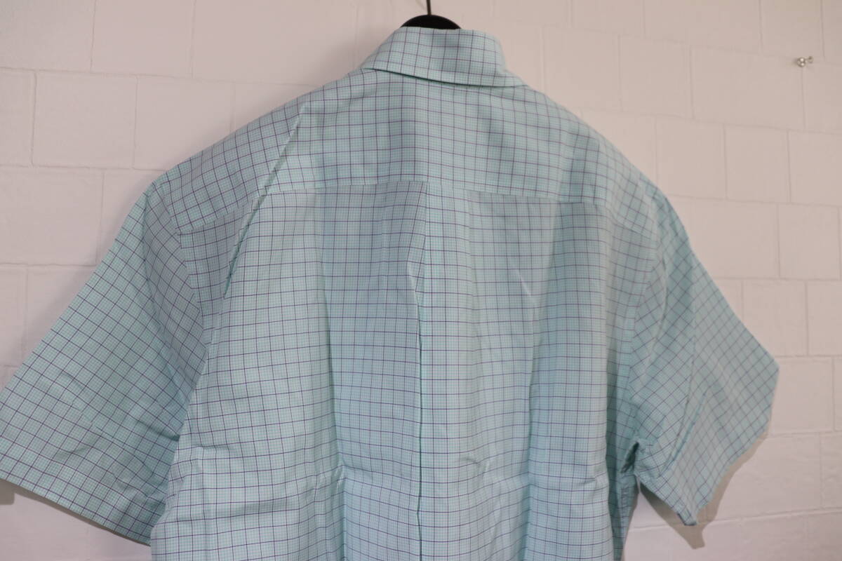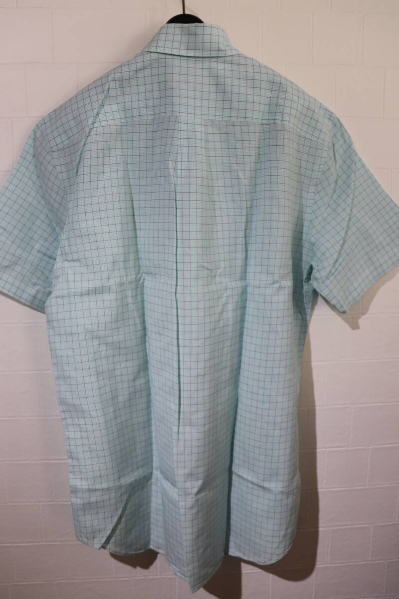 即決 Paul Stuart ポールスチュアート 綺麗な色調のチェック柄 半袖ボタンダウンシャツ ビジネスシャツ ドレスシャツ メンズ L ブルー系