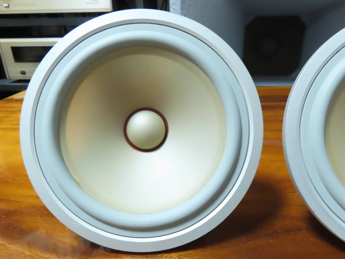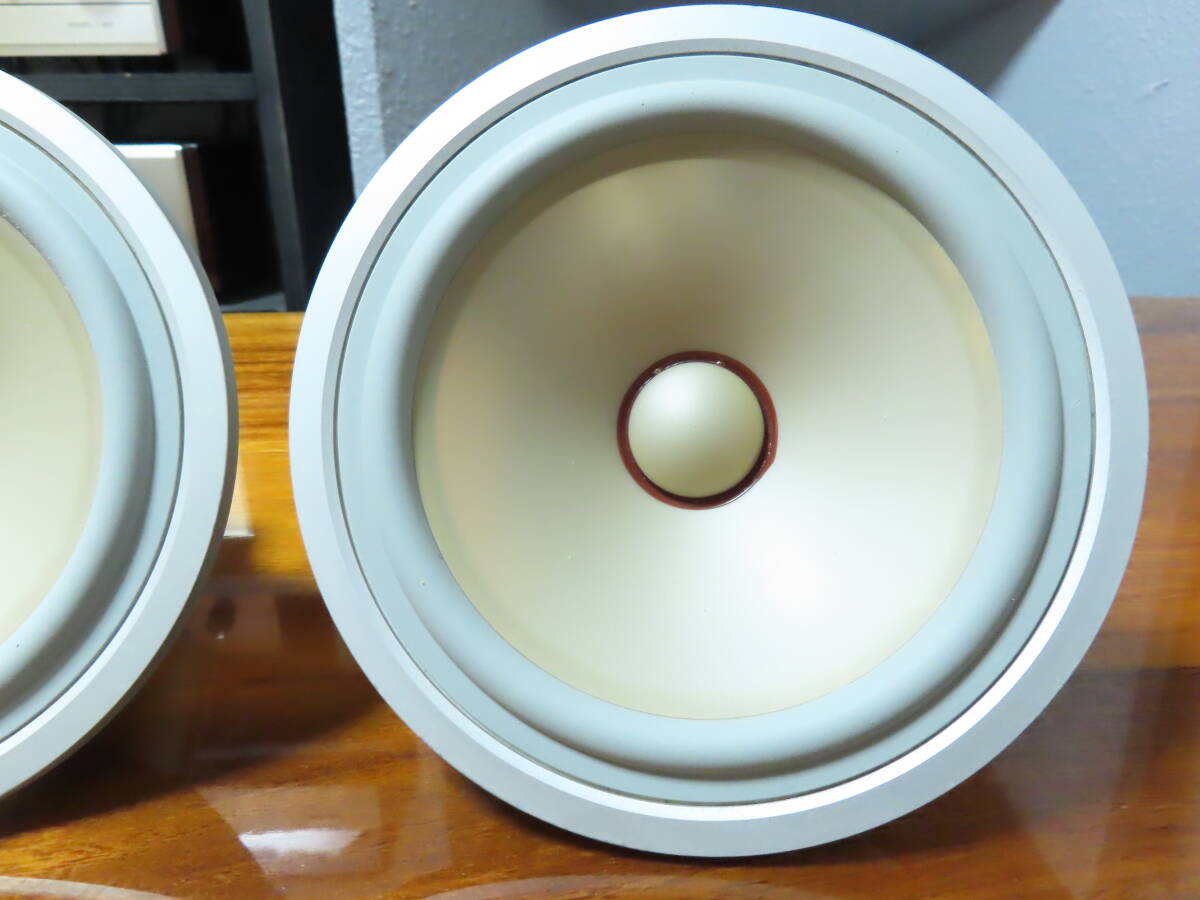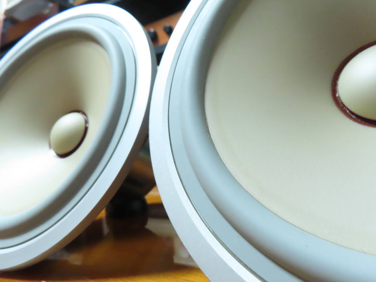 ●目立つ傷無く。全体的に非常に綺麗な希少な個体です。 ●各部の清掃、メンテナンスを行い、末永くご愛用頂けるよう綺麗に仕上げてあります。 ●経年劣化が見られましたので、同色のソフトゴムエッジで張替えてあります。 ●下記のインピーダンス特性はオリジナルのゴムエッジと今回使用したゴムエッジを比べた特性表です。 ●クロスエッジとは違い、ゴム素材は軟化するような素材では無いので、硬化や割れてしまった物はエッジを交換するしかないのが現状です。 ![]() ●ユニット単体での計測になりますが、オリジナルの青いグラフはユニット単体にもかかわらず、最低共振周波数78Hzを指し、経年によるエッジの劣化によって、本来の性能が出ていないのがわかります。 ●メーカーの仕様によると60Hzから再生可能なシステムですので、密閉型を考慮してもユニット単体の特性であれば50Hzあたりが妥当な数値と思います。よって本来の性能まで改善させてあります。 ●振動板、エッジ良好です。左右雑音無く綺麗な音楽を聞かせてくれます。 ●状態の良いシステムをお探しの方は是非。 ●YAMAHA NS-1classics システム紹介と凄い内部 | |||