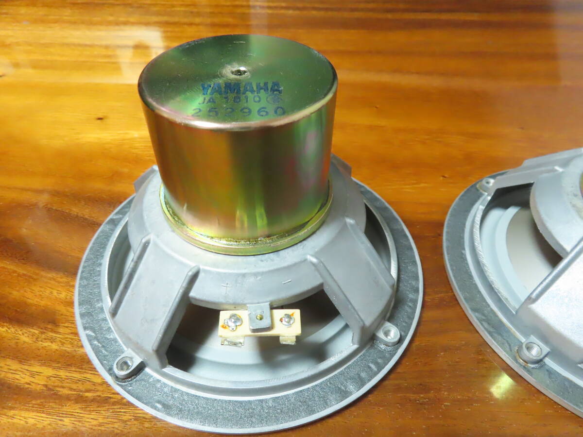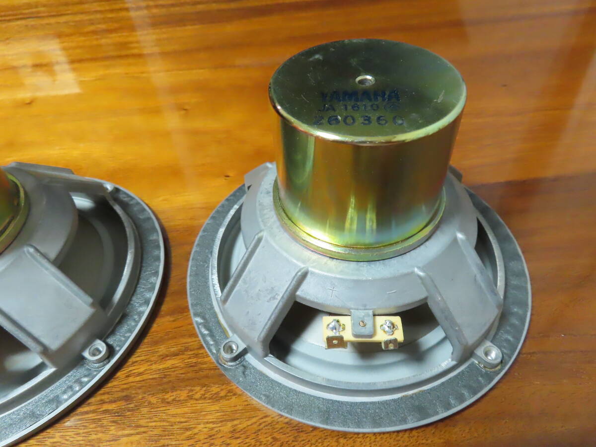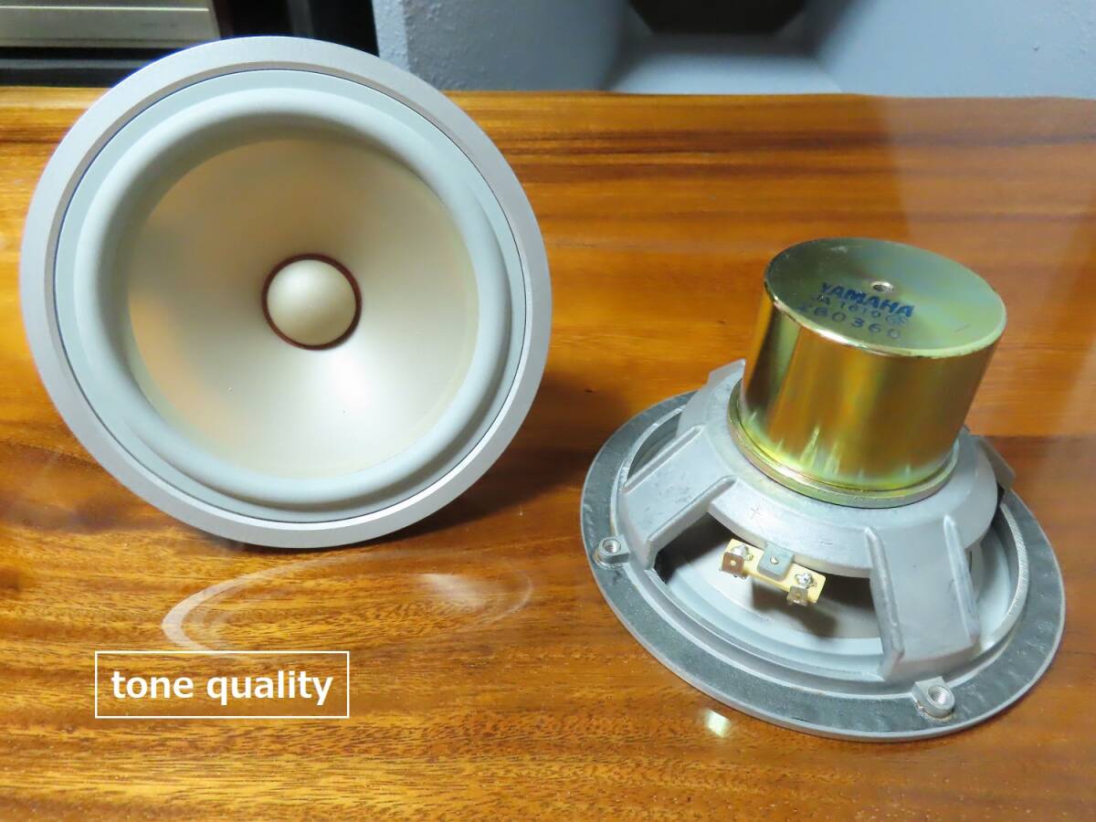 ●目立つ傷無く。全体的に非常に綺麗な希少な個体です。 ●各部の清掃、メンテナンスを行い、末永くご愛用頂けるよう綺麗に仕上げてあります。 ●経年劣化が見られましたので、同色のソフトゴムエッジで張替えてあります。 ●下記のインピーダンス特性はオリジナルのゴムエッジと今回使用したゴムエッジを比べた特性表です。 ●クロスエッジとは違い、ゴム素材は軟化するような素材では無いので、硬化や割れてしまった物はエッジを交換するしかないのが現状です。 ![]() ●ユニット単体での計測になりますが、オリジナルの青いグラフはユニット単体にもかかわらず、最低共振周波数78Hzを指し、経年によるエッジの劣化によって、本来の性能が出ていないのがわかります。 ●メーカーの仕様によると60Hzから再生可能なシステムですので、密閉型を考慮してもユニット単体の特性であれば50Hzあたりが妥当な数値と思います。よって本来の性能まで改善させてあります。 ●振動板、エッジ良好です。左右雑音無く綺麗な音楽を聞かせてくれます。 ●状態の良いシステムをお探しの方は是非。 ●YAMAHA NS-1classics システム紹介と凄い内部 | |||