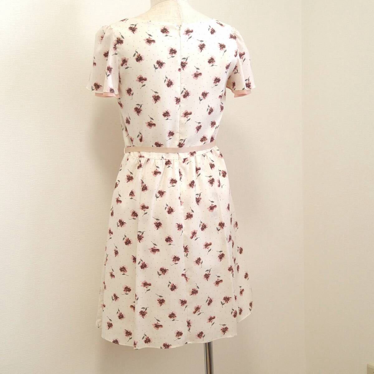 PEYTON PLACE 花模様 ワンピース S グログランリボン 夏 春 花柄 ペイトンプレイス