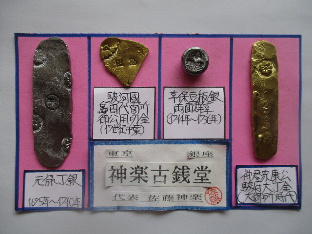 【身辺整理】古銭コレクション 秤量貨幣③(神君家康公駿府大丁金・駿河国島田代官所御公用切金・元禄丁銀・享保豆板銀)