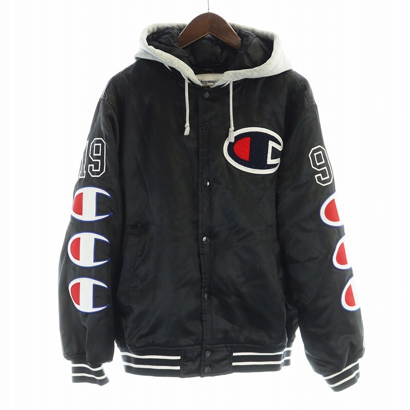 シュプリーム SUPREME チャンピオン Champion 18AW Hooded Satin Varsity Jacket Black ジャンパー ブルゾン 長袖