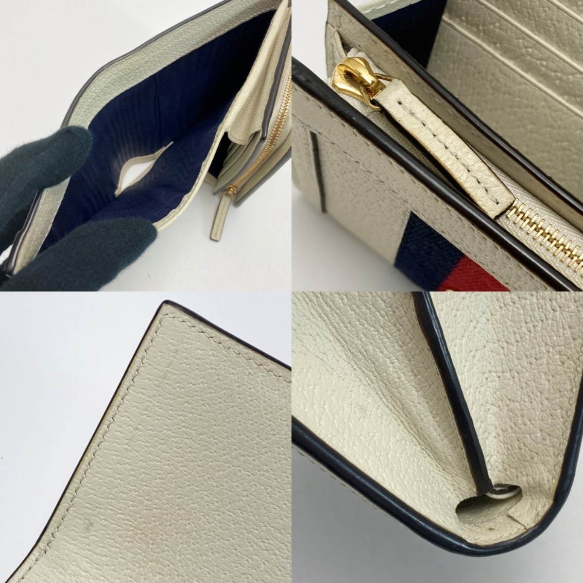 ☆☆ GUCCI グッチ オフィディア 2つ折り財布 シェリーライン 598662 アイボリー コンパクトウォレット レザー やや傷や汚れあり