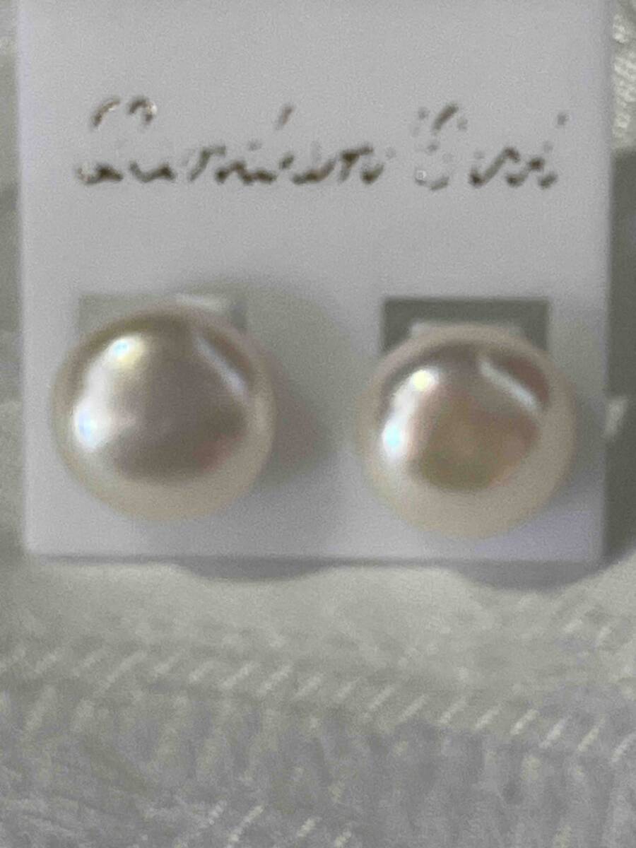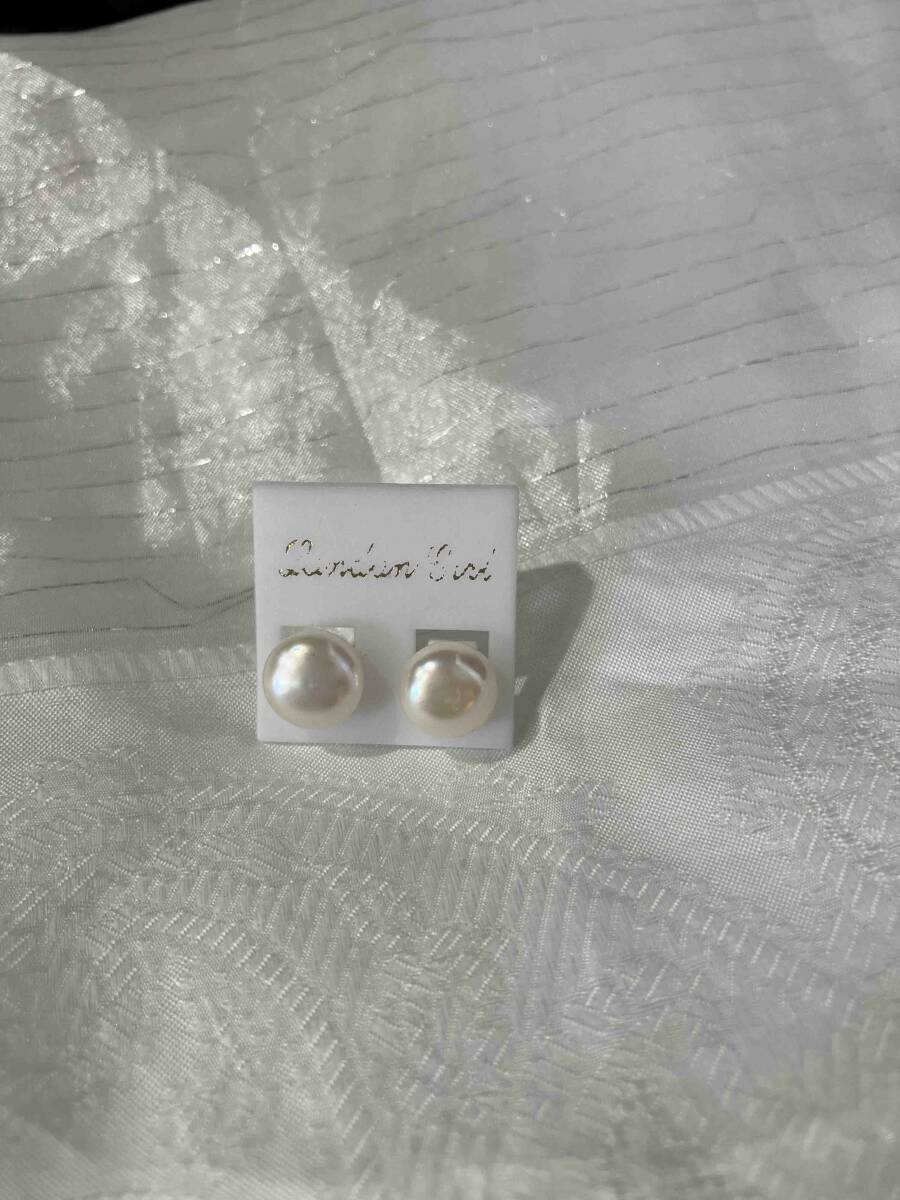 ただ平型直径10mmの淡水パールにピンが付いたシンプルなデザインです。