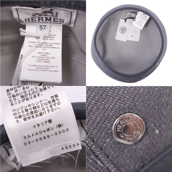 | 未使用 エルメス HERMES 帽子 22SS サントーレ ベレー帽 コットン レディース イタリア製 57 グレー |