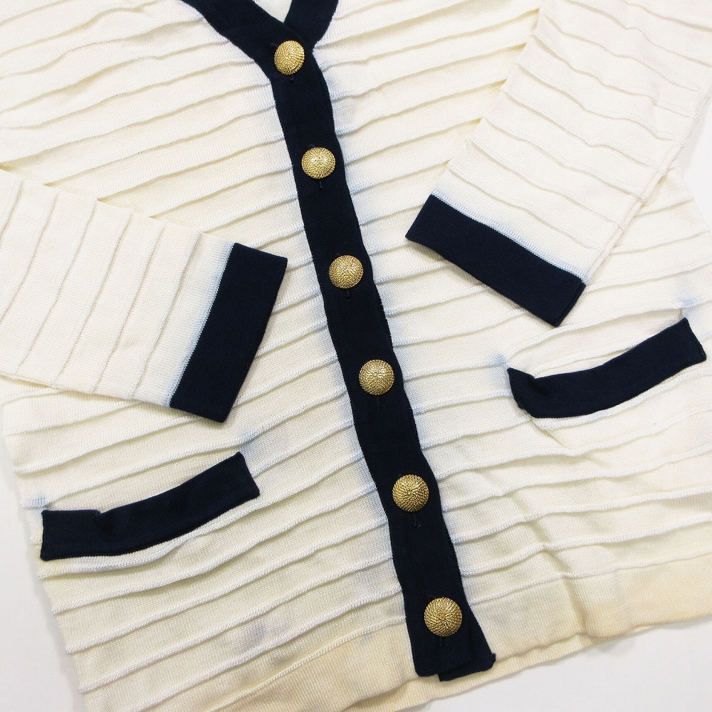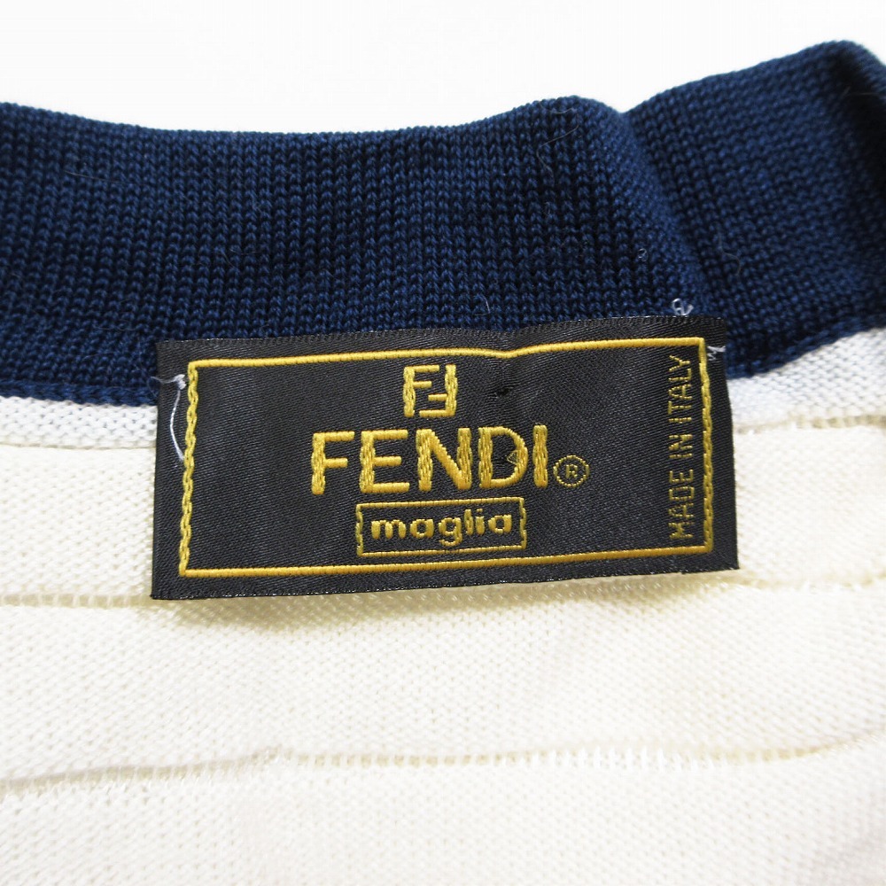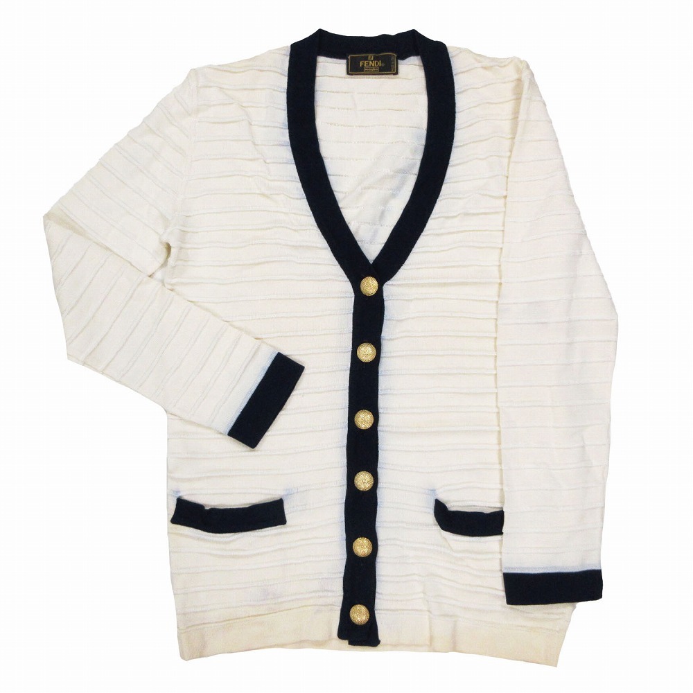 | 【Vintage FENDI フェンディ 金ボタン ボーダー カーディガン ジャケット 配色 トリミング サイズ42 M ネイビー レディース】 | |