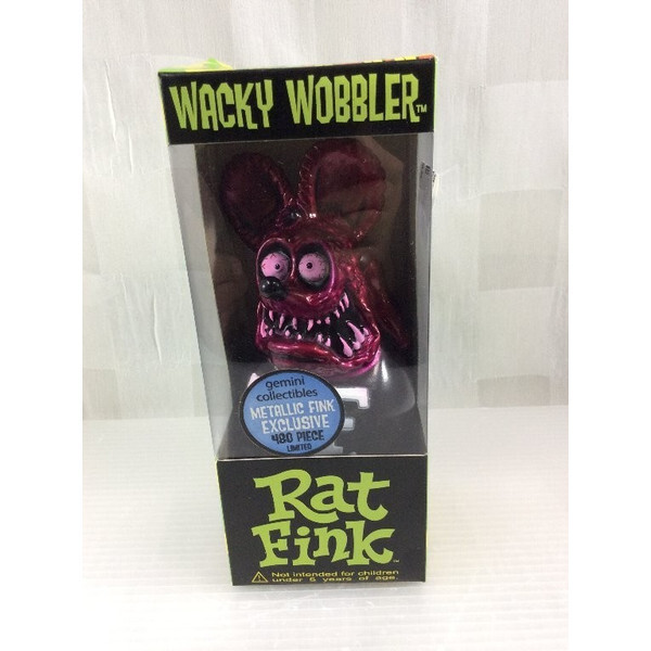 【204118】ラットフィンクのボビングヘッドです。指でちょこんと押すと表情豊かなラットフィンクがゆらゆらとコミカルに体を揺らします。 【サイズ】W75/D75/H190mm(パッケージ)