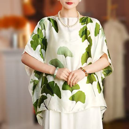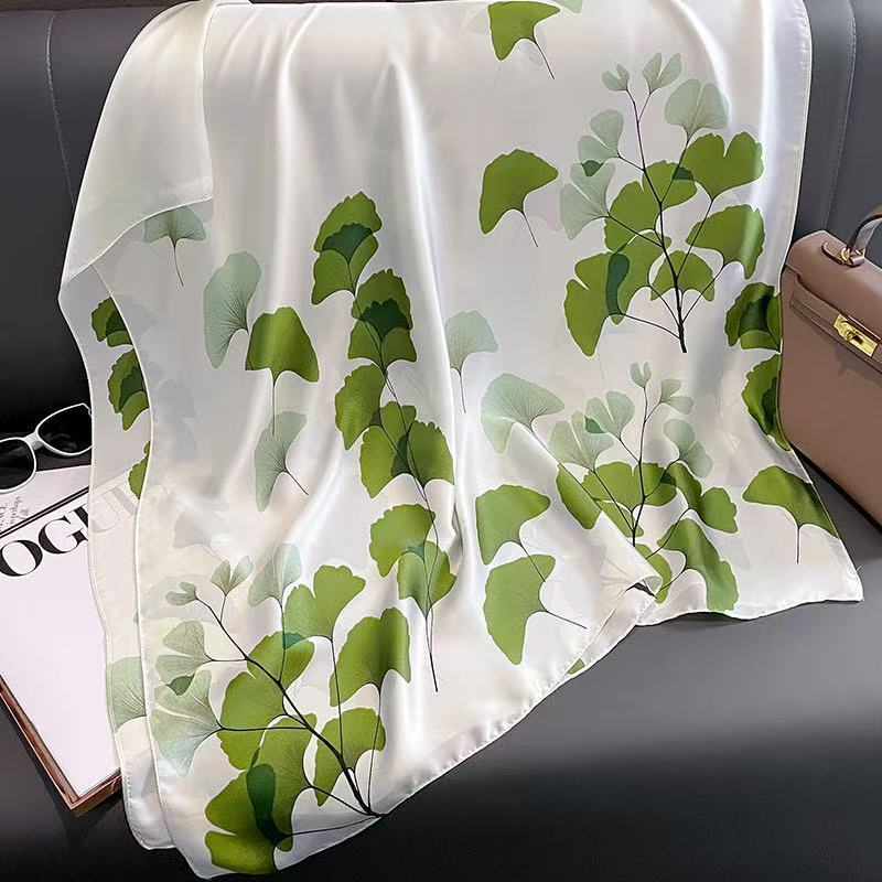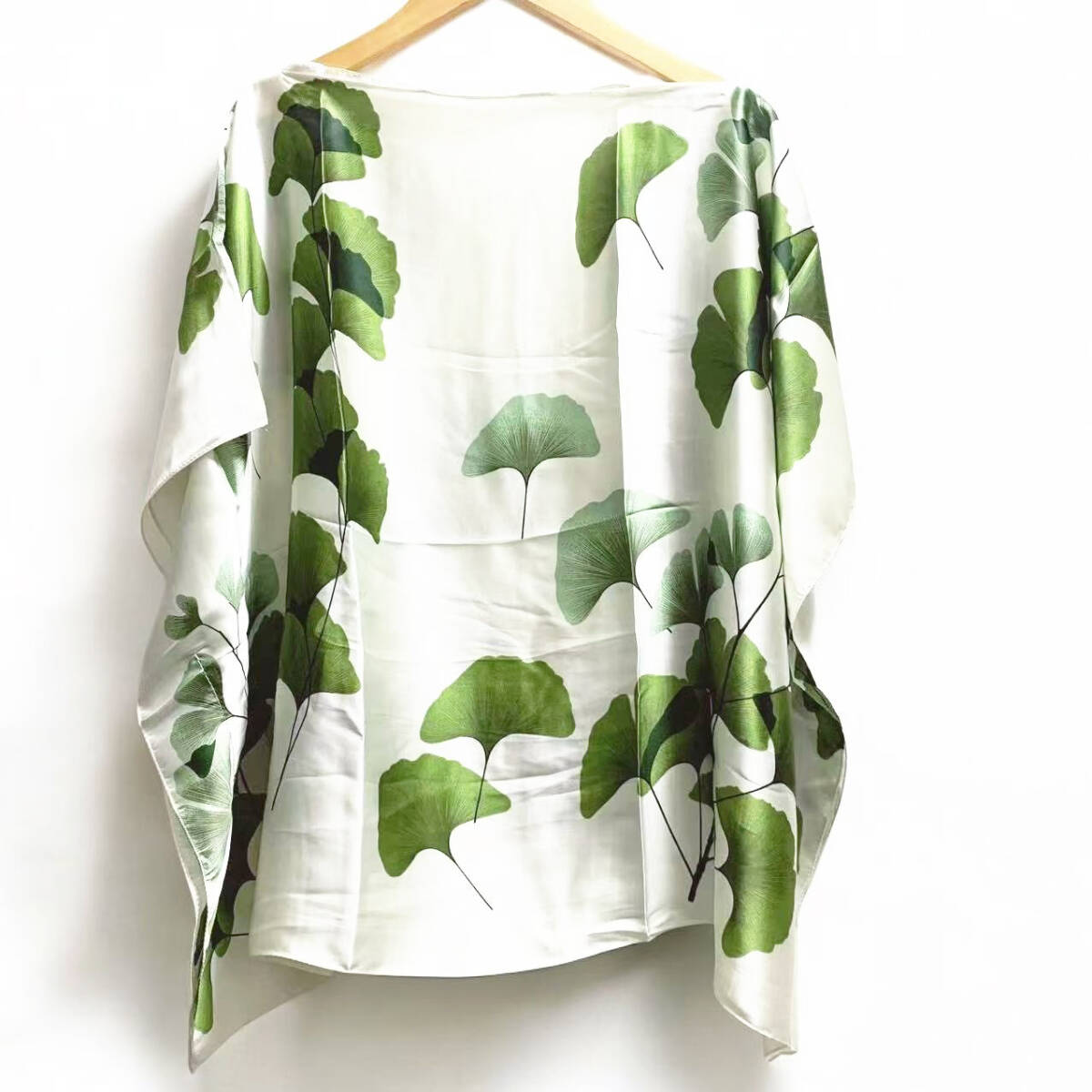 フリーサイズ シルク調 スカーフ素材 滑らか手触り レディース 衣類 涼しい夏 ファッション 通気性 Tシャツ イチョウの葉