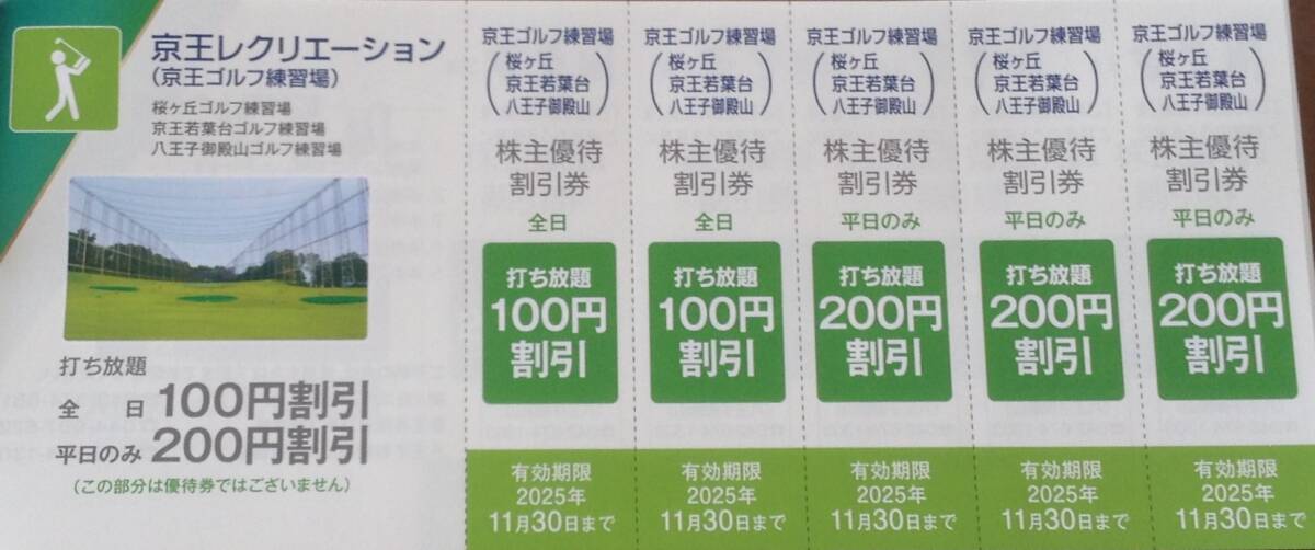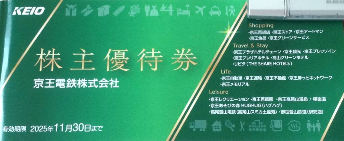 京王電鉄グループで優待が受けられる株主優待券冊子です。京王百貨店のお買物10%割引券5枚、京王百貨店の写真・貸衣装10%割引券2枚、京王アートマン10%割引券10枚、京王グリーンサービス10%割引券5枚、京王プラザホテル宿泊料優待または飲食費10%割引券10枚、京王プレッソイン500円割引券2枚、京王プレリアホテル割引券5枚、高山グリーンホテル宿泊代1000円割引券5枚、ShareHotelsチェーンReBiTa宿泊代500円割引券5枚、京王観光キングツアー各種割引券10枚、京王タクシー50円割引券6枚、京王自動車工賃10%割引券2枚、京王運輸の引っ越し代金20%割引券2枚、京王不動産仲介手数料10%割引券1枚、家事代行サービス1000円割引券2枚、葬儀費10%割引券1枚や京王系ゴルフ場の平日200円割引券3枚、全日100円割引券2枚や、京王テニススクール割引券5枚、百草園入園料20%割引券4枚、高尾山温泉極楽湯100円割引券4枚や遊びの森HUGHUG100円割引券4枚や高尾登山電鉄売店土産代10%割引券2枚、御岳登山鉄道売店土産代10%割引券2枚、等々メッチャお得な株主優待券冊子未使用新品です。