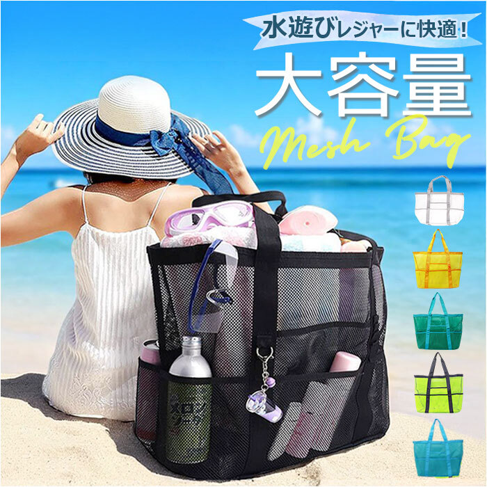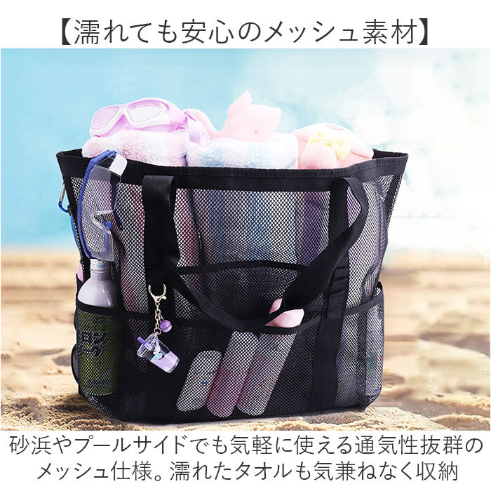 商品名 | メッシュバッグ プールバッグ 大容量 ポケット付き |