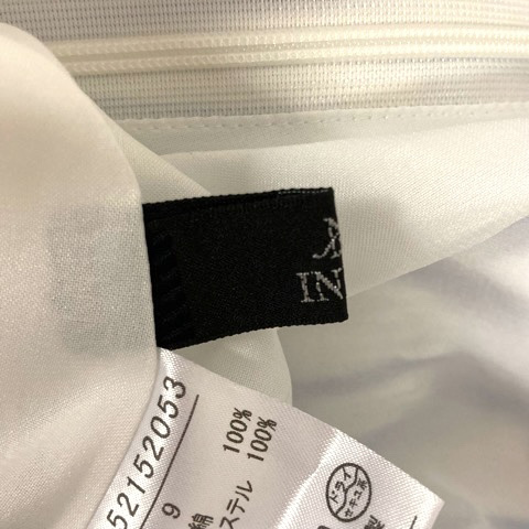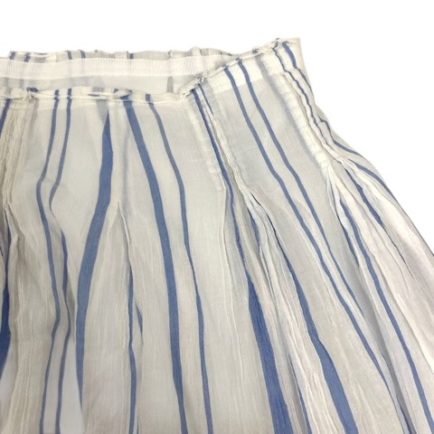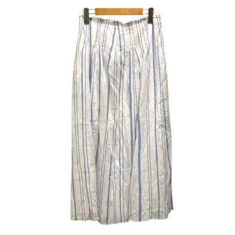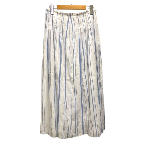 イネド INED スカート フレア ギャザー コットン ストライプ ロング丈 9 白 ホワイト 青 ブルー レディース