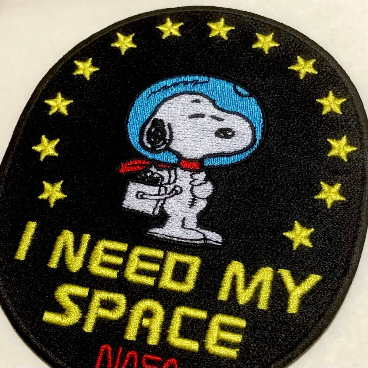 スヌーピー 宇宙服 NASA アイロンパッチ 黒 です。