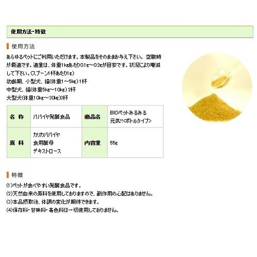 「BNペット ボトルタイプ 55g」▼4560118071034▼(商品説明)・ 55グラム (x 1) 4.56012E+12・商品サイズ (幅×奥行×高さ) :45×45×80mm・内容量:55g説明 原材料・成分 カリカパパイヤ、デキストロース、食用酵母