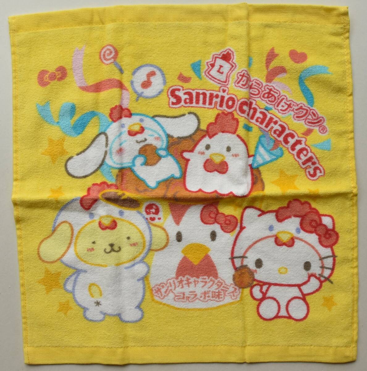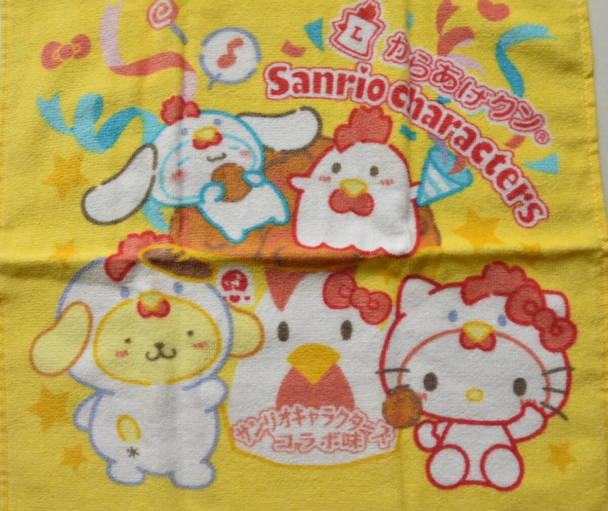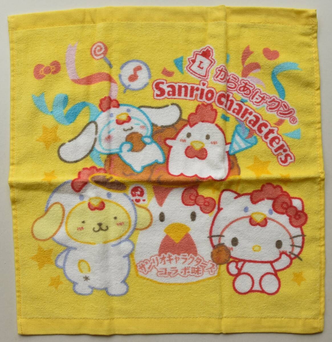 からあげクン サンリオキャラクターズ タオル 35×35㎝ 未使用新品 キティちゃん キティ 黄色 シナモン ポムポムプリン