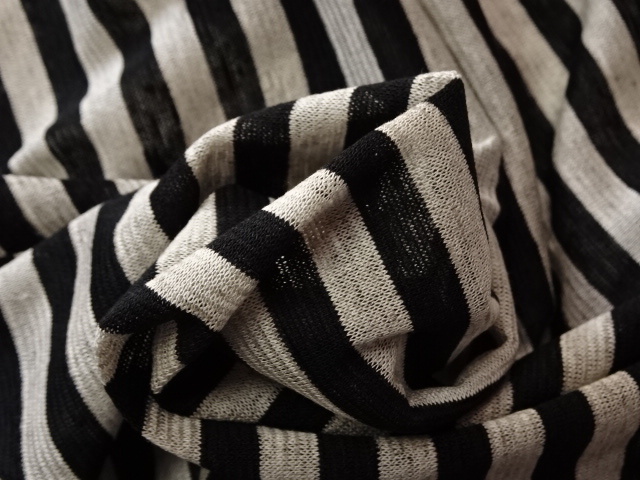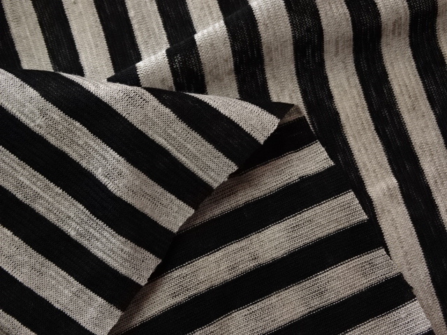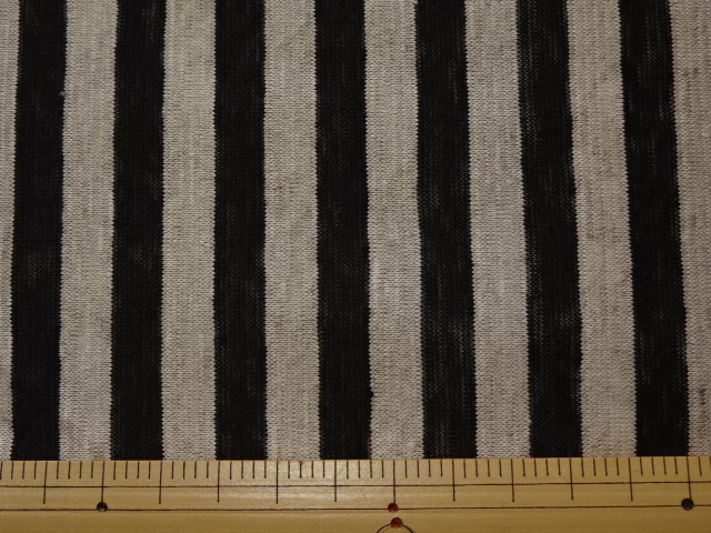 国産/最高級麻編服地/麻100%/ボーダー/天竺/ニット/BK/5m/管020