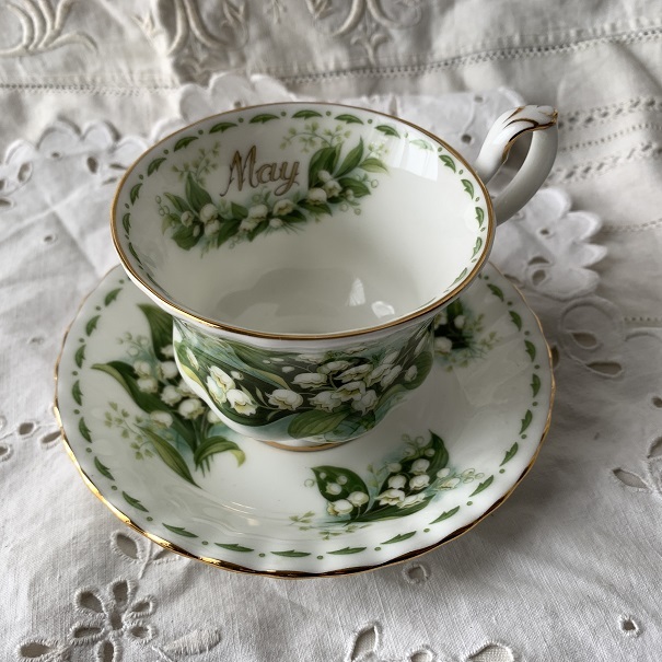 美品 ロイヤルアルバート ROYAL ALBERT フラワーオブザマンシリーズ 鈴蘭 5月 すずらん柄 カップ&ソーサー 廃盤品 希少 スズラン