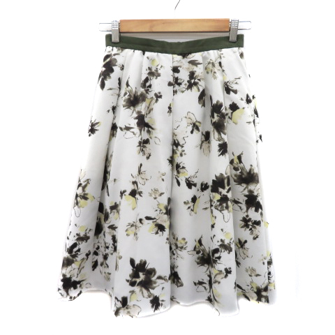 ジャスグリッティー JUSGLITTY フレアスカート ギャザースカート ミモレ丈 花柄 2 マルチカラー 白 ホワイト /YK6 レディース