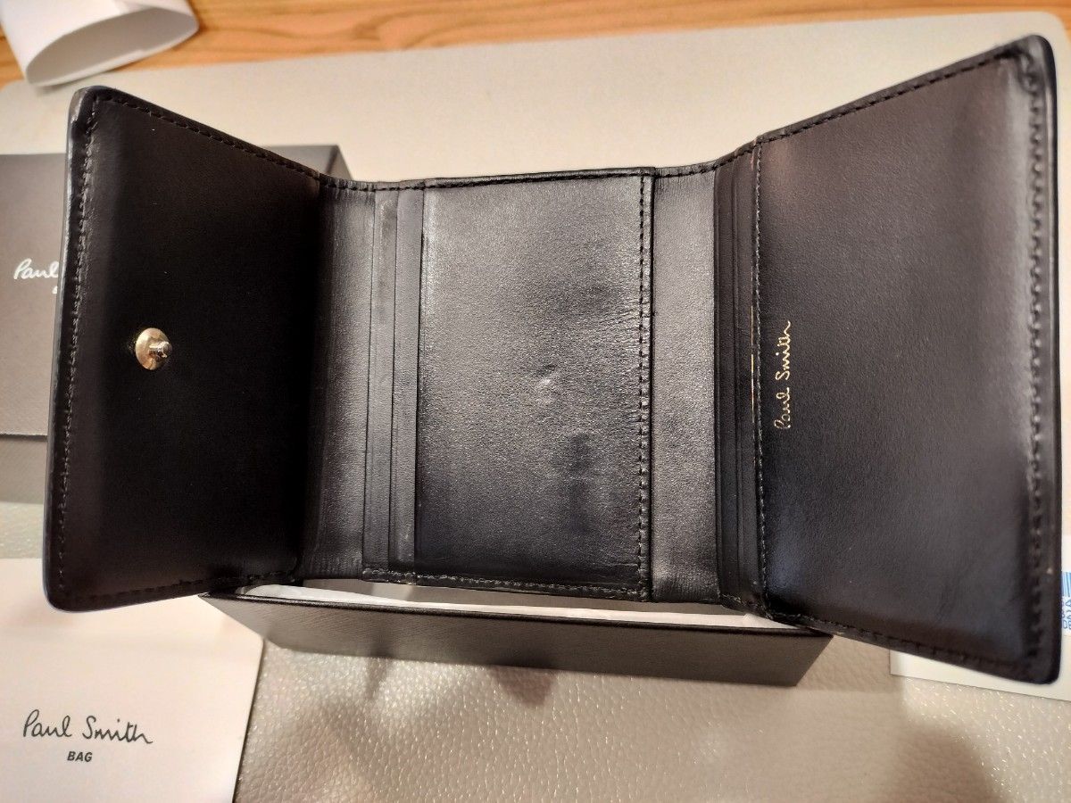 ポールスミスの3つ折財布になります。 1年間ほど使用しました。 ハッキリとした汚れとかは見当たりませんが、使用感はありますので、ご了承ください。 何かわからないことがあれば質問してください。