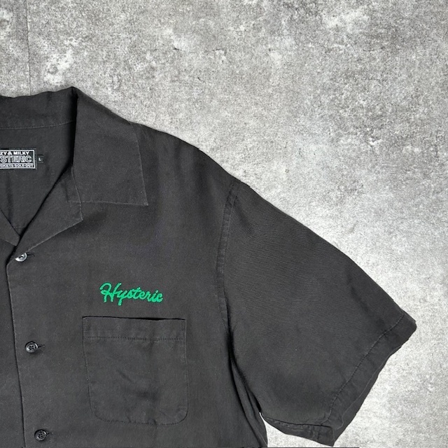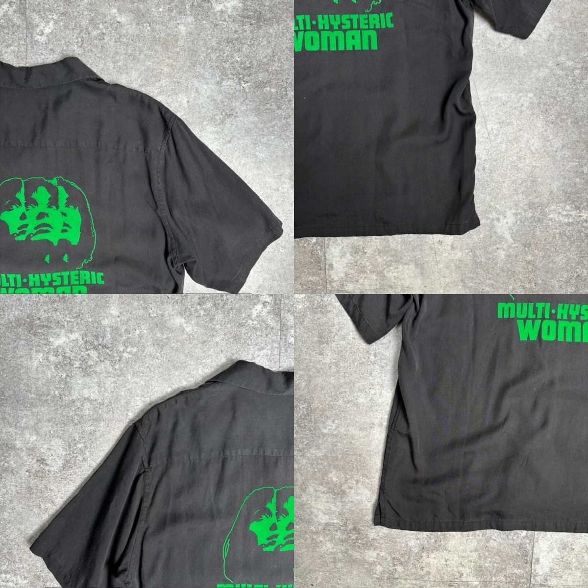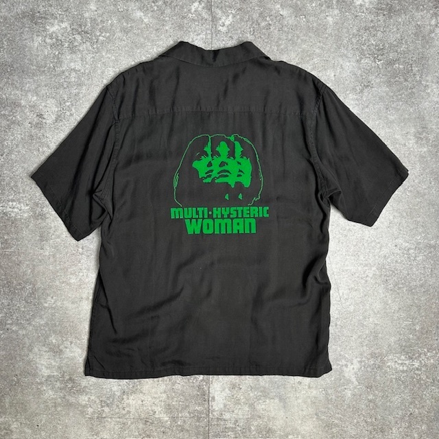 | STAFF COMMENT | 50'Sヴィンテージを意識した、ゆとりのあるシルエットのボウリングシャツになっております。胸元にはHYSTERICチェーン刺繍と、後ろのMULTI WOMAN柄のフロッキープリントをデザイン。若干の使用による擦れはございますが、まだまだ使っていただけるコンディションです。 |