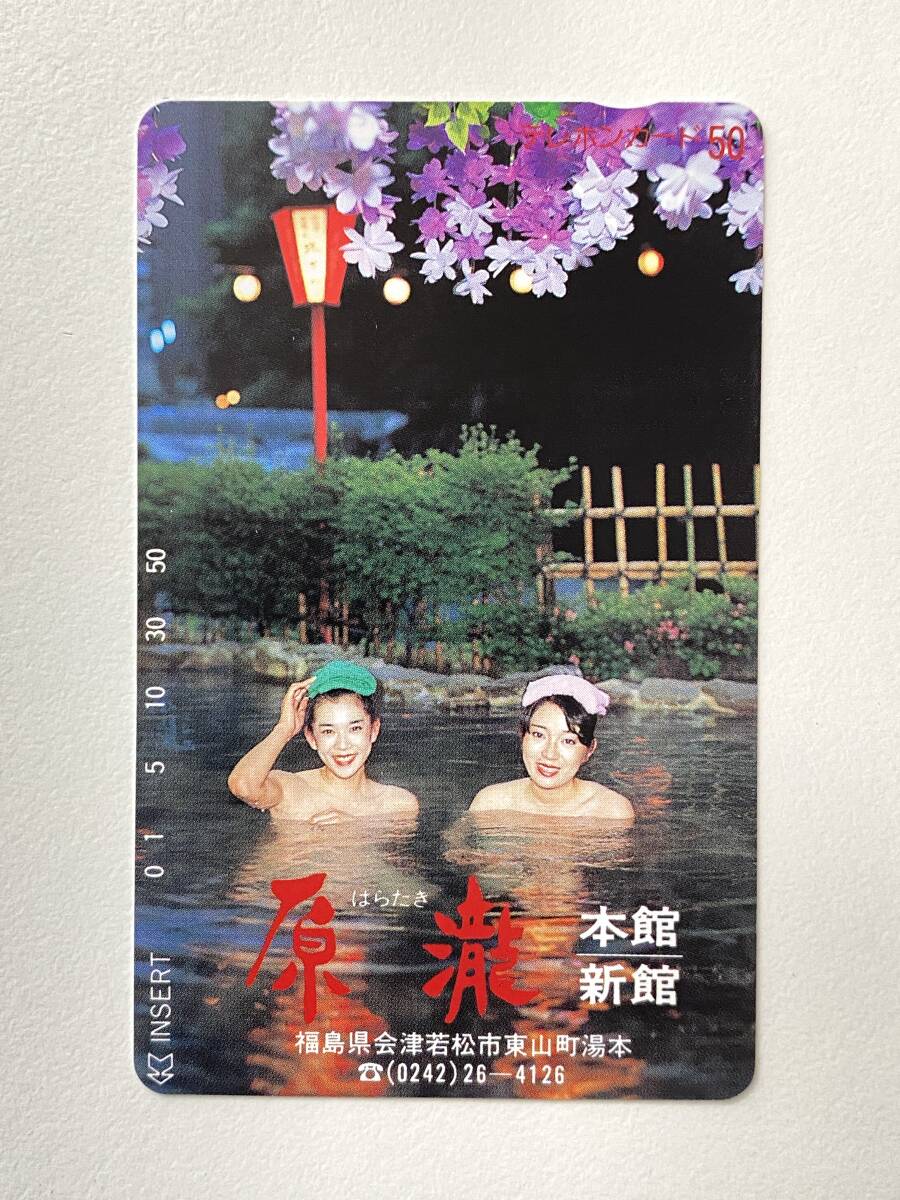 12月終了!【T233】温泉 テレカ 50度数 未使用 福島 会津温泉 原瀧 テレホンカード 女性 モデル 入浴 湯けむり 宿屋 ホテル 旅館
