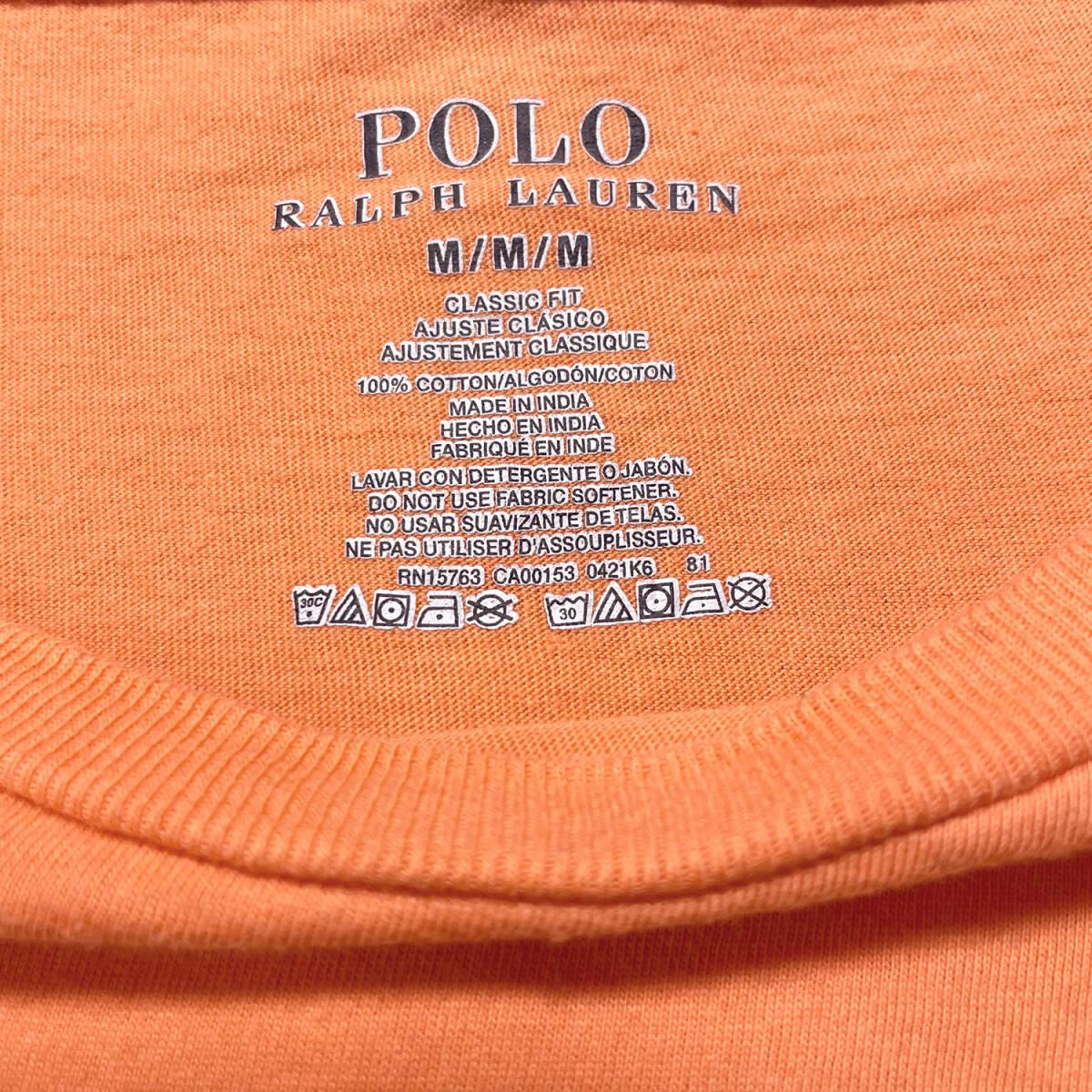 USA 古着 Polo Ralph Lauren ポロラルフローレン Tシャツ 裾刺繍 ワンポイント ロゴ オレンジ メンズM クルーネック BA4186