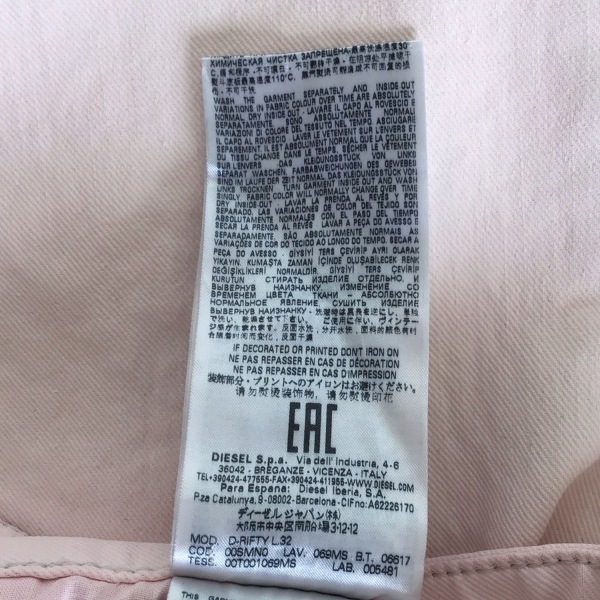 ディーゼル DIESEL パンツ サイズ25 XS D-RIFTY ライトピンク レディース フルレングス/ダメージ加工 美品 ボトムス