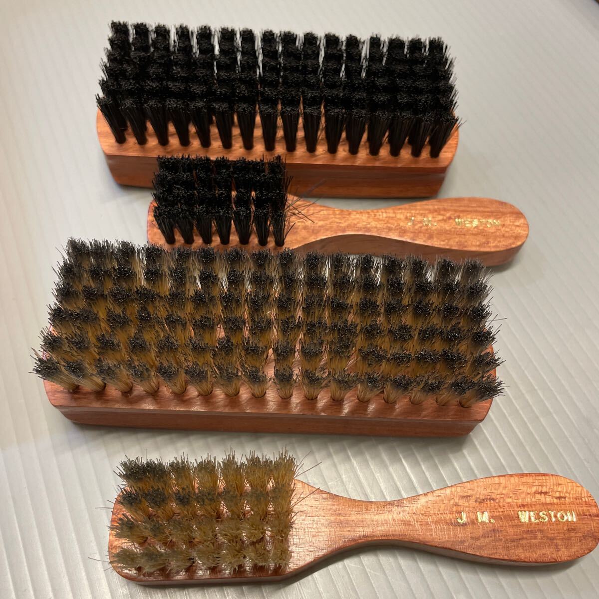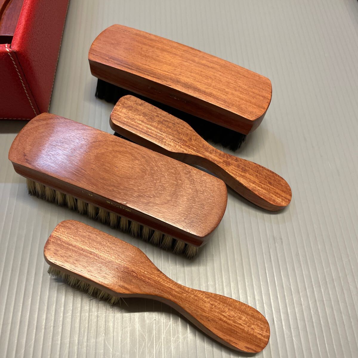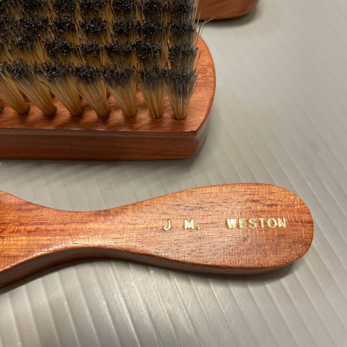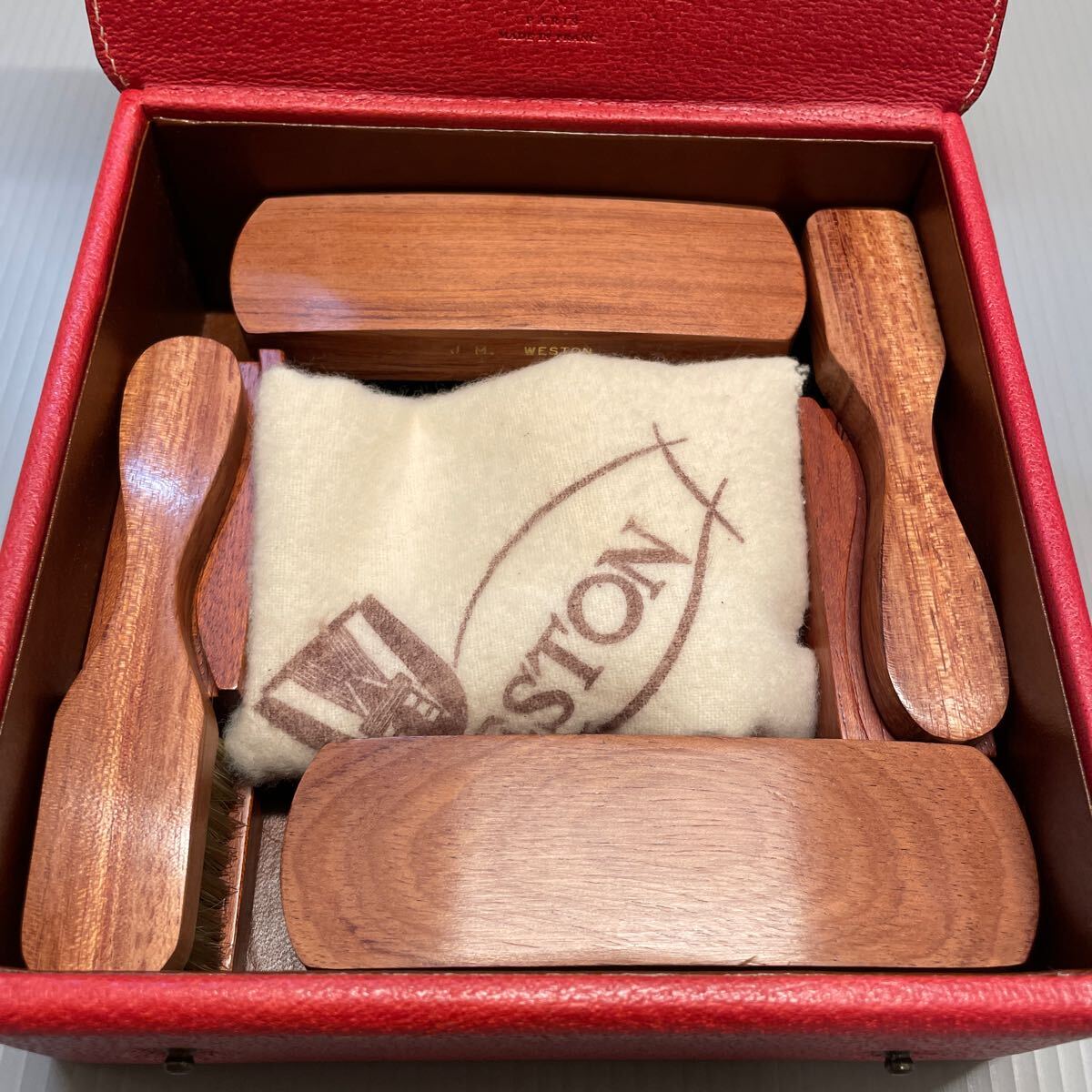 J.M.WESTON J.M.ウエストン 純正 ケアアイテム レザーケース入り木製持ち手 ブラシセット 純正ブラッククリームで1~2度使用品の程度良好自宅保管品になります。