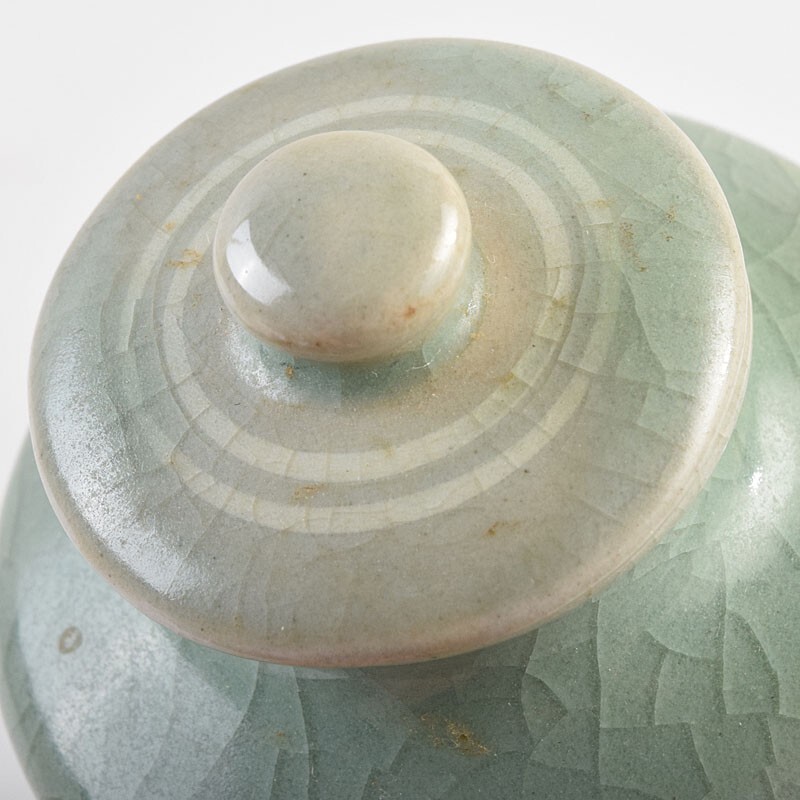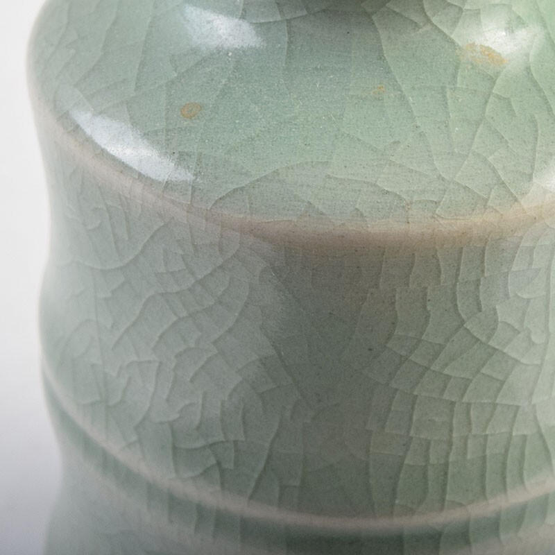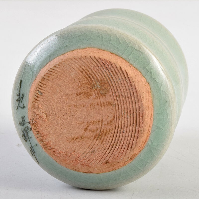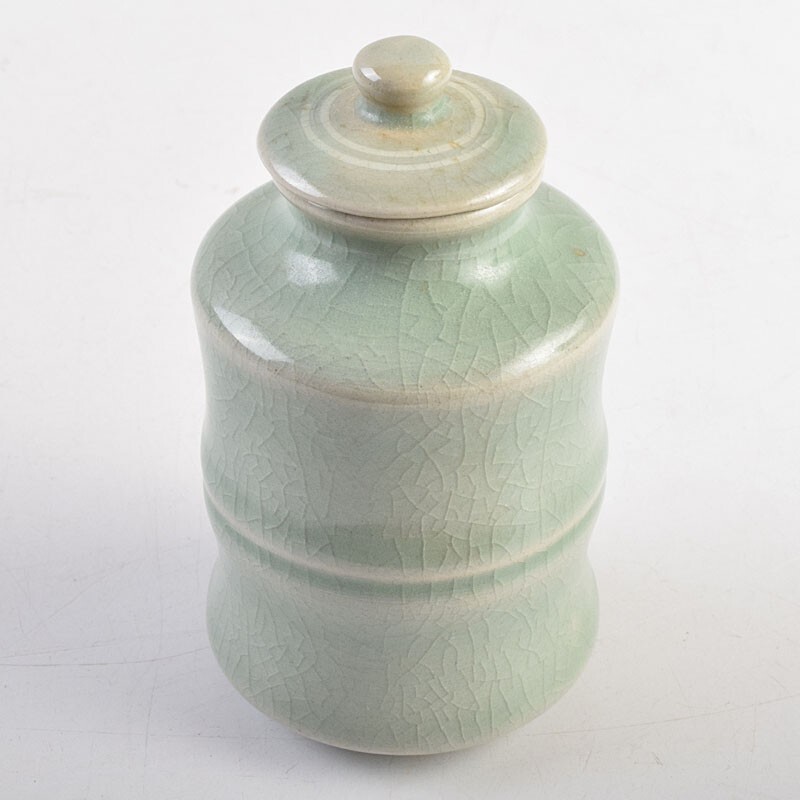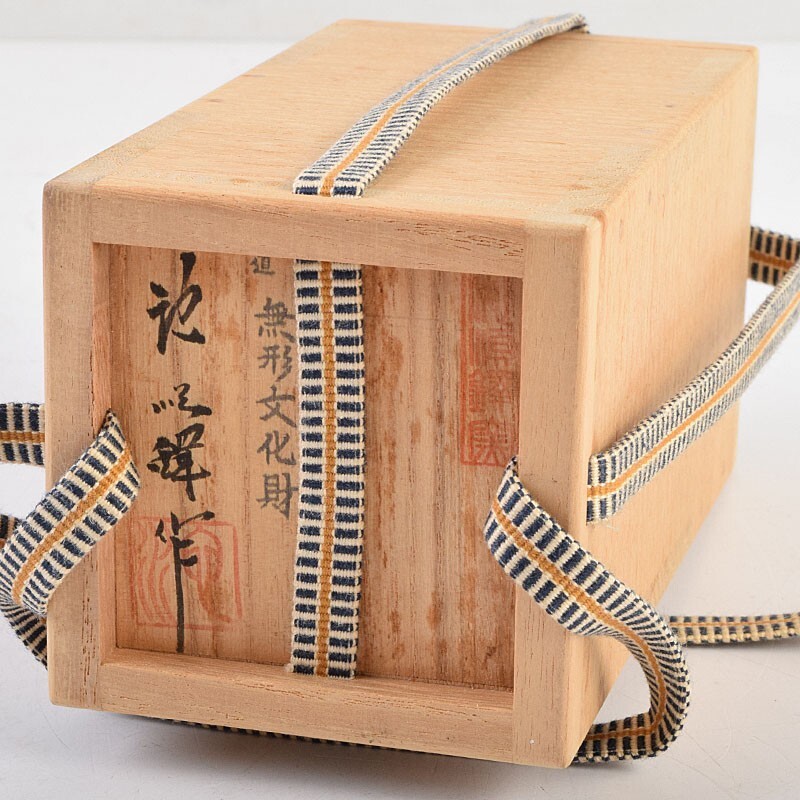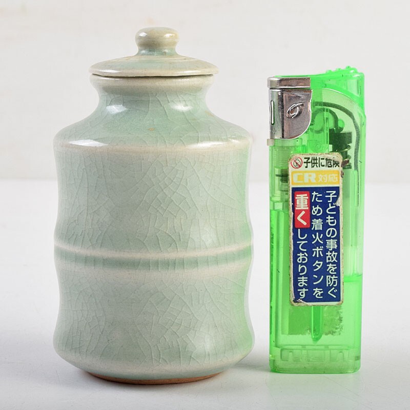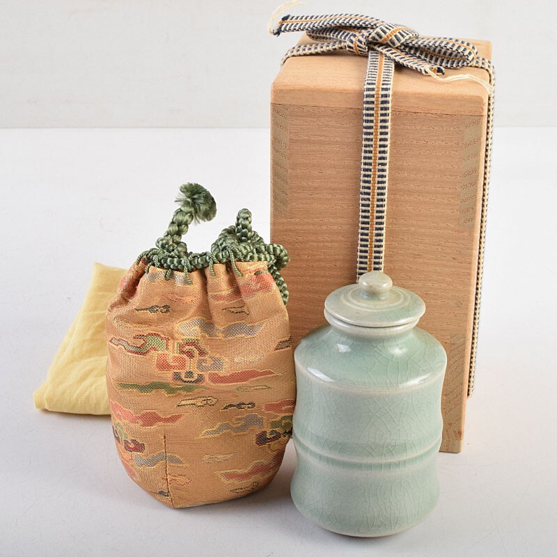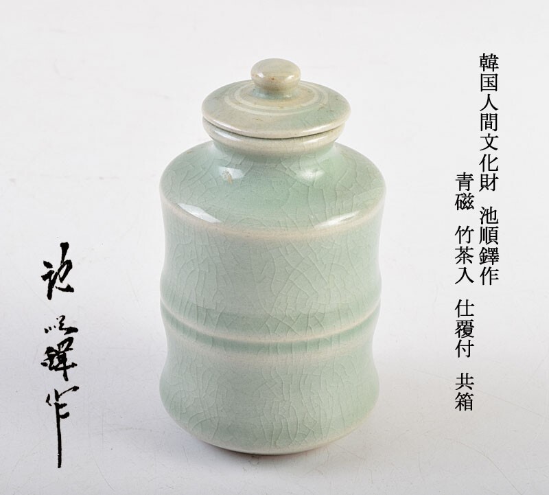 茶道具 韓国人間文化財 池順鐸作 青磁 竹茶入 仕覆付 共箱 VYEA