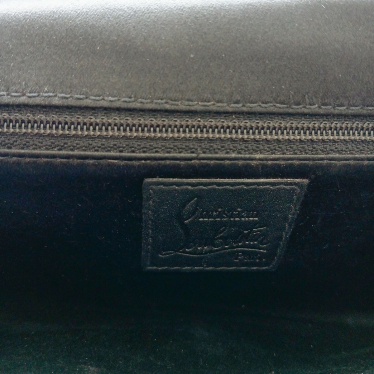 クリスチャンルブタンのブラックサテン、クラッチバッグ。