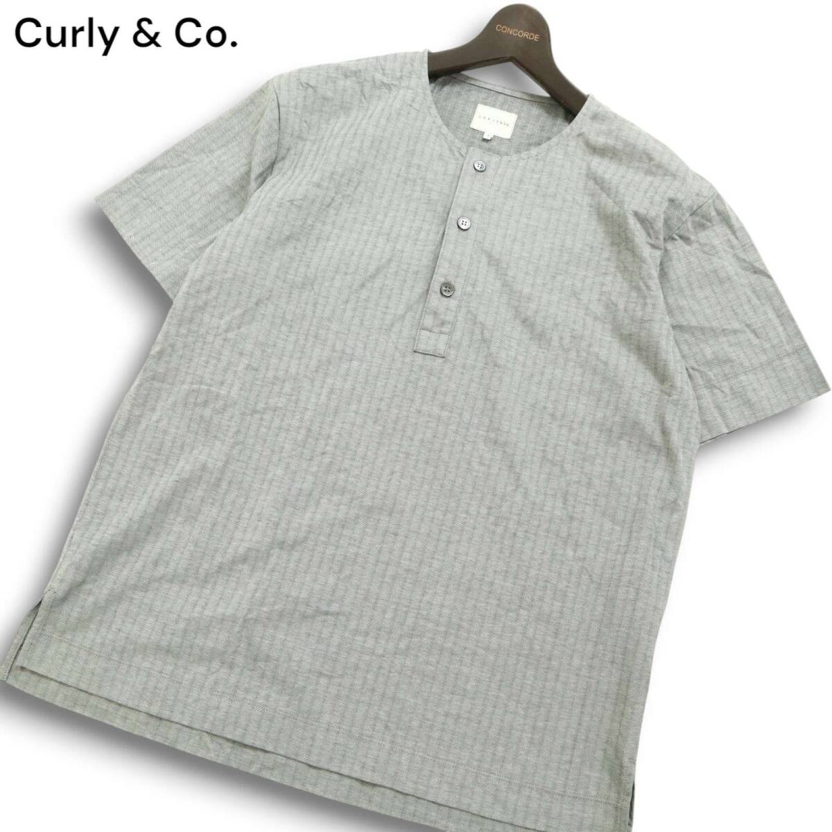 CURLY & Co. カーリーアンドコー 半袖 ヘリンボーン★ ヘンリーネック カットソー Tシャツ Sz.2 メンズ 灰 グレー 日本製