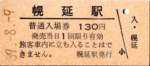 JR北海道エリア 幌延駅(宗谷本線)入場券 130円券