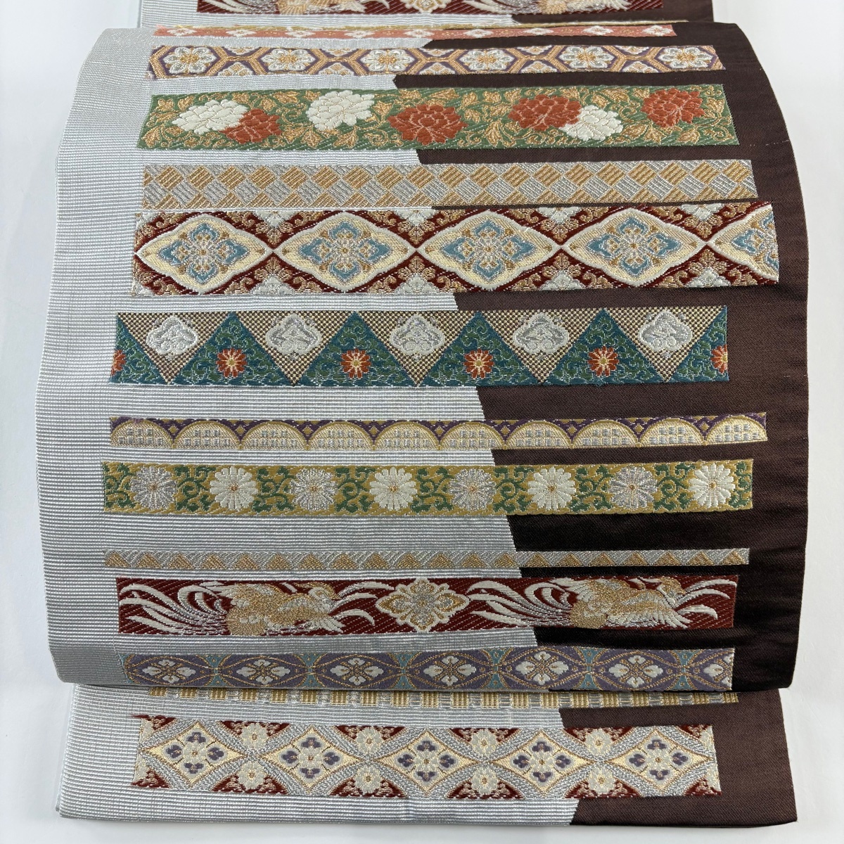 | 袋帯 美品 秀品 鳥 花 金銀糸 刺繍 茶色 六通 正絹 【中古】 |