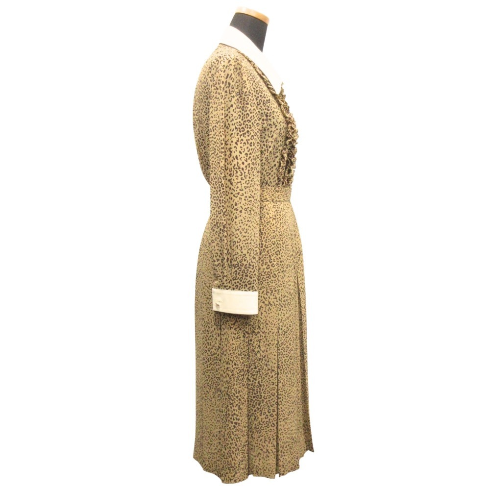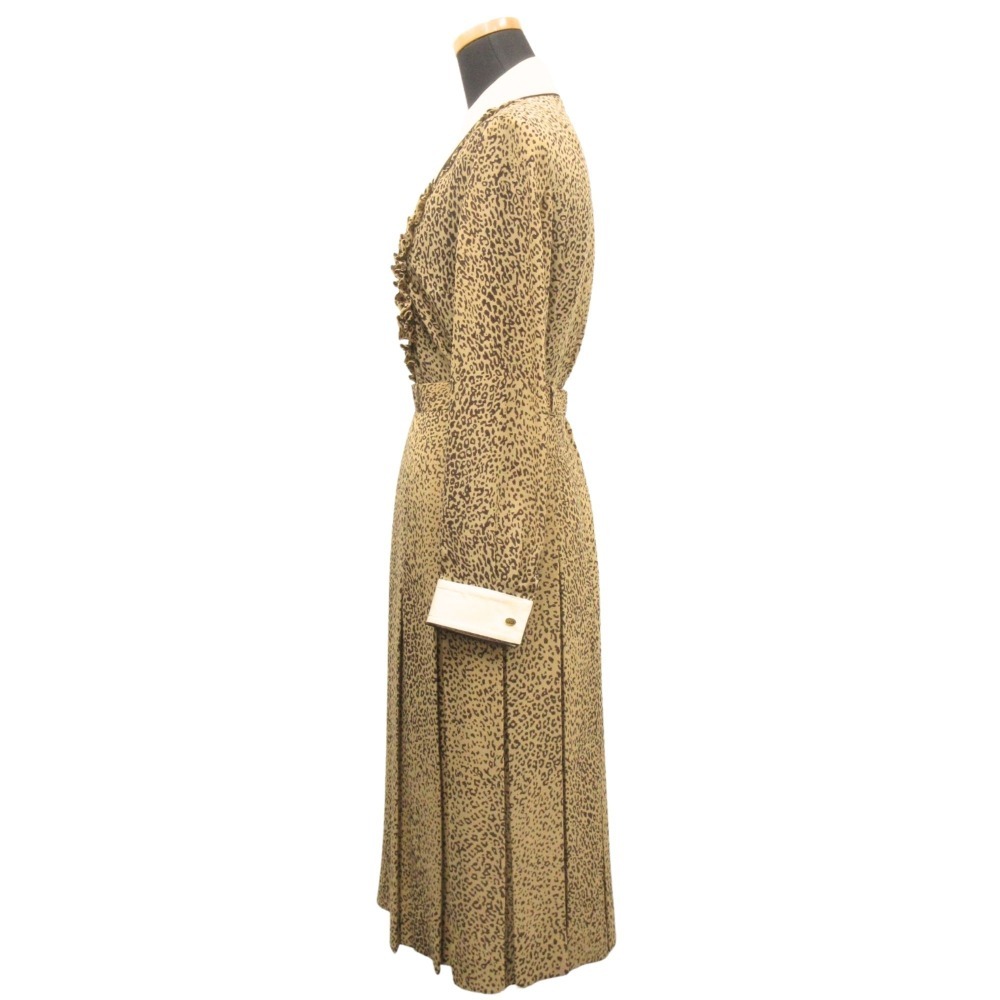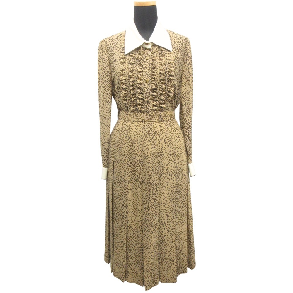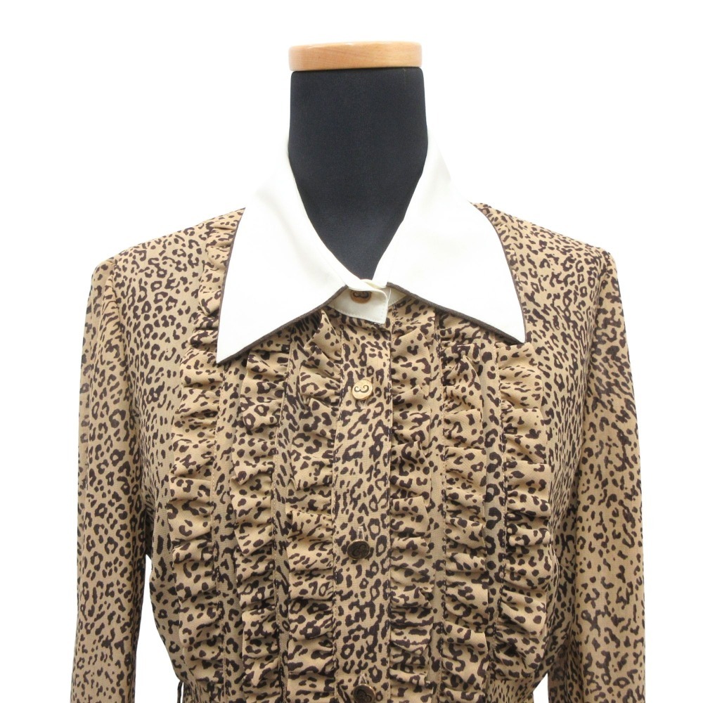 商品名:Leilian レリアン フリル レオパード セットアップ ブラウス スカート 金ボタン ビンテージ レトロ サイズ9 茶 ブラウン