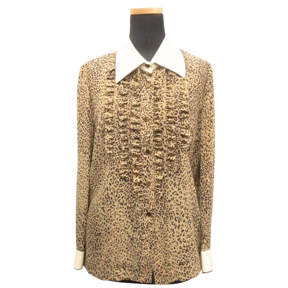 美品 Leilian レリアン フリル レオパード セットアップ ブラウス スカート 金ボタン ビンテージ レトロ サイズ9 茶 ブラウン